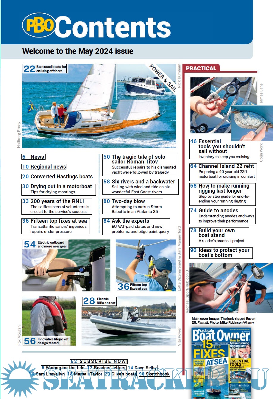 Year: 2024 Language: English Editor: Katy Stickland Genre: Periodical (magazine) Publisher: Future Publishing Limited Edition: May 2024 Format: PDF Quality: eBook Pages count: 94 Description: Practical Boat Owner is a British magazine about boats. It is published by IPC Media. It is a magazine that includes boat maintenance and repairing from baking bread on your boat to replacing your sprayhood windows. Also includes the latest news of sailing and motor boats from around the world