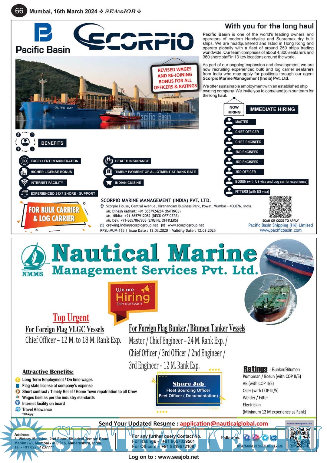 Year: 2024 Language: English Author: Sea Line Group Genre: Periodical (magazine) Edition: Vol. XVII, No. 06/24 Format: PDF Quality: Scanned pages + text layer Pages count: 72 Description: The Sea and Job magazine launched in May 2007, was the second venture of Sea Line Group succeeding 'seajob.net' bringing the much renowned essence to the Group, the Sea and Job Magazine quickly gained popularity, becoming the No. 1 Shipping Magazine that came to be widely circulated all over India. Sea and Job over the years has evolved as the most trusted, ethical, objective and read maritime publication that possesses a large database of subscribers from various verticals in the industry.The magazine provides informative and interesting articles covering not just the shipping world but also the world outside it.Sea and Job is also a medium for the shipping/ manning companies to advertise marine jobs and also to promote their organization by publicizing internal activities like seminars, sports events and parties.Some notable endeavors of the magazine include the Know Your Recruiter Column, the Sailing Episodes Column and the Marine Insights section. The consistent efforts and the dedication to provide extraordinary services to the industry has resulted in the magnifying popularity and patronage of Sea and Job. Additional info: 16-31 March 2024.