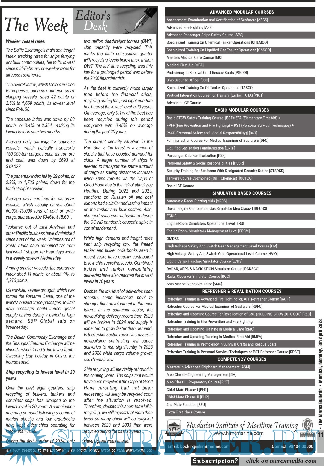 Description: The No 1 Twice weekly employment magazine for Seafarers.The Leading magazine for seafarers to locate Ship-board Employment opportunities, Training Institutes, Shipping companies.Online version: https://issuu.com/marexmediapvtltd Contents
