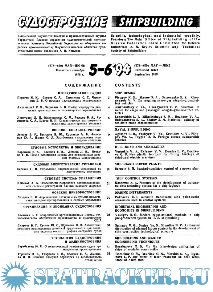 Журнал «Судостроение» 1994-01 - группа авторов [1994, PDF]