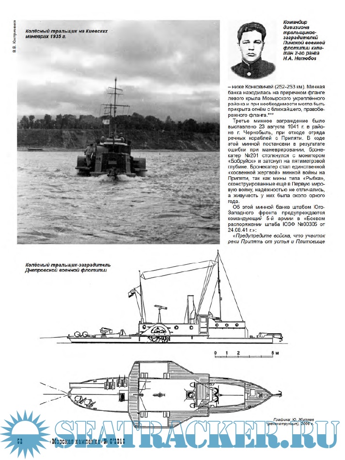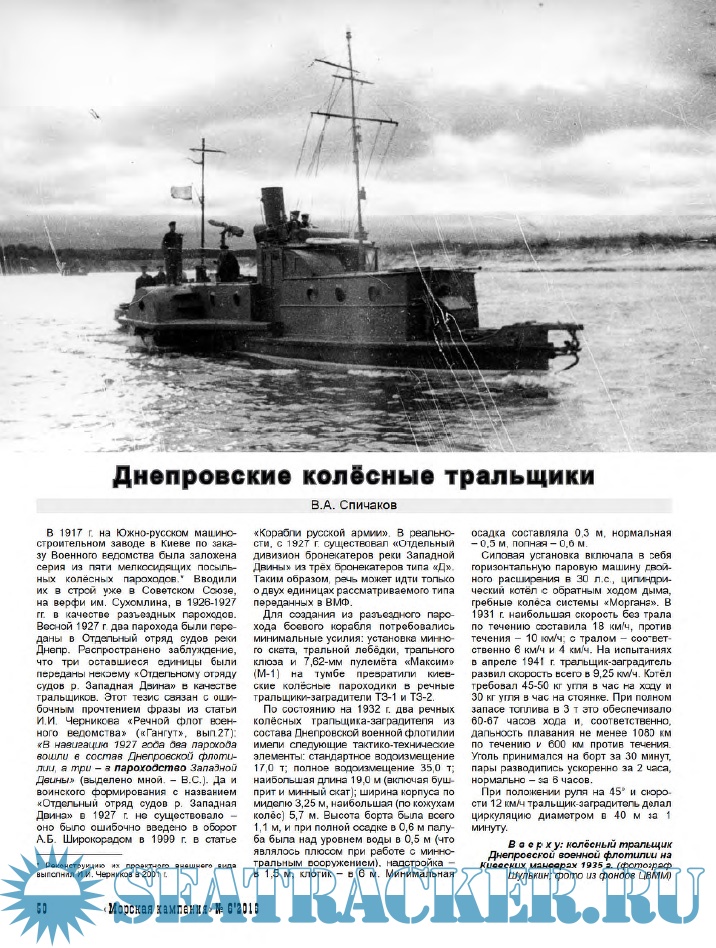 Статья Валерия Александровича Спичакова (г. Львов, Украина) освещает очередную малоизвестную страничку днепровских военных флотилий. На этот раз рассказ пойдет о колесных тральщиках специальной постройки.