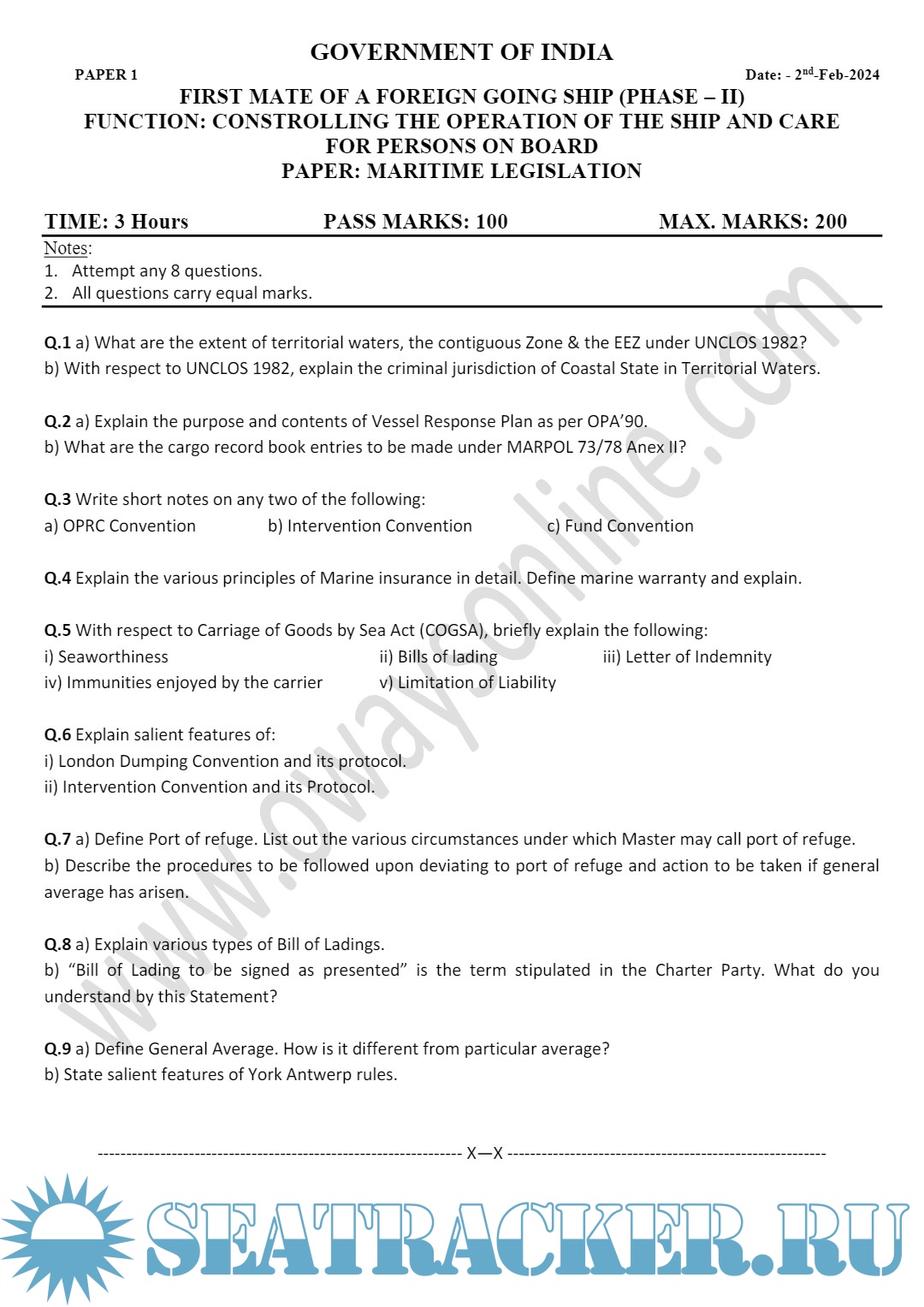 Maritime Law Question Bank Till Jan 2024
