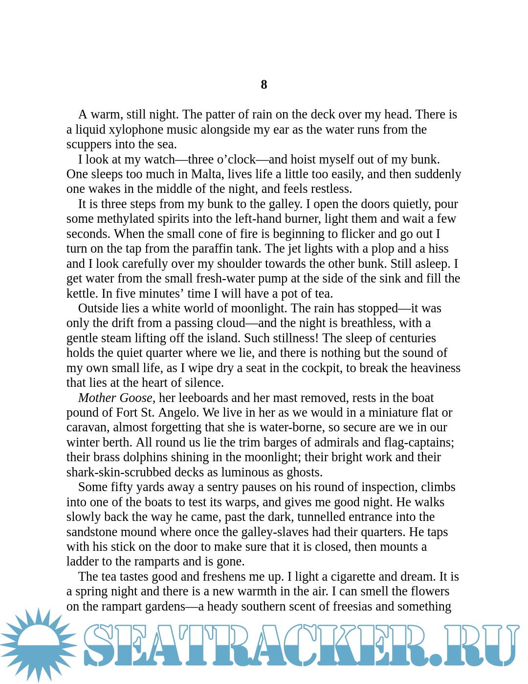Year: 2014 Language: English Author: Bradford E. Genre: History Publisher: Open Road Integrated Media, Inc. Format: PDF/EPUB Quality: eBook Pages count: 217 Description: A memoir of life as an adventurer and sailor in the Mediterranean, by the noted naval historian. Ernle Bradford spent his twenty-first birthday in Egypt, serving in the Royal Navy during World War II. It was there that he came across the profoundly affecting words of Anton Chekhov: "Life does not come again; if you have not lived during the days that were given to you, once only, then write it down as lost." After the war, Bradford married and settled in London, but the mandate of those words inspired him and his wife to quit their jobs, sell their home, and sail to France in their small ship Mother Goose. The Journeying Moon chronicles their adventures as they travel through Europe and the Mediterranean. From the people of Malta who believed Bradford was a spy from MI5, to his interactions with the Sicilian Mafia, Bradford tells the charming and vivid tale of his days as a true adventurer.