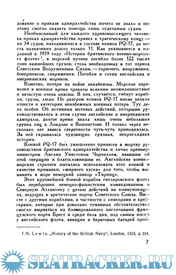 Год выпуска: 1968 Язык: Русский Автор: Маклин Алистер Жанр: Художественная литература Формат: PDF Качество: Отсканированные страницы Количество страниц: 293 Описание: Книга основана на реальных событиях: во время Второй мировой войны английский морской конвой должен был доставить в Мурманск военную технику и горючее. Бушующий ледяной океан, продирающий до костей мороз, вахты под бомбами и снарядами, потоки человеческой крови и сотни трупов; каждый из героев романа может умереть в любую секунду... В таких экстремальных условиях проявляются мужество, верность боевому долгу, благородство и настоящие мужские характеры участников смертельной экспедиции.