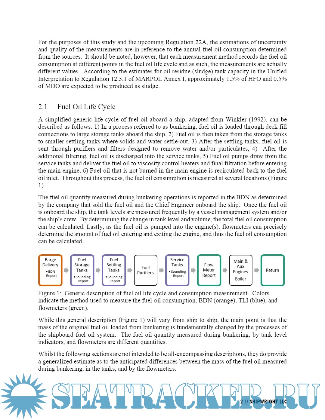 1. Annual fuel oil consumption determined from BDN and TLI data were in close agreement; whereas, the values determined from flowmeter data were systematically lower with the differences larger than what can be reasonably associated with fuel oil processing. The relatively large variance of the flowmeter data when compared to the BDN and TLI data suggest that the flowmeter data contain considerable amounts of random error.