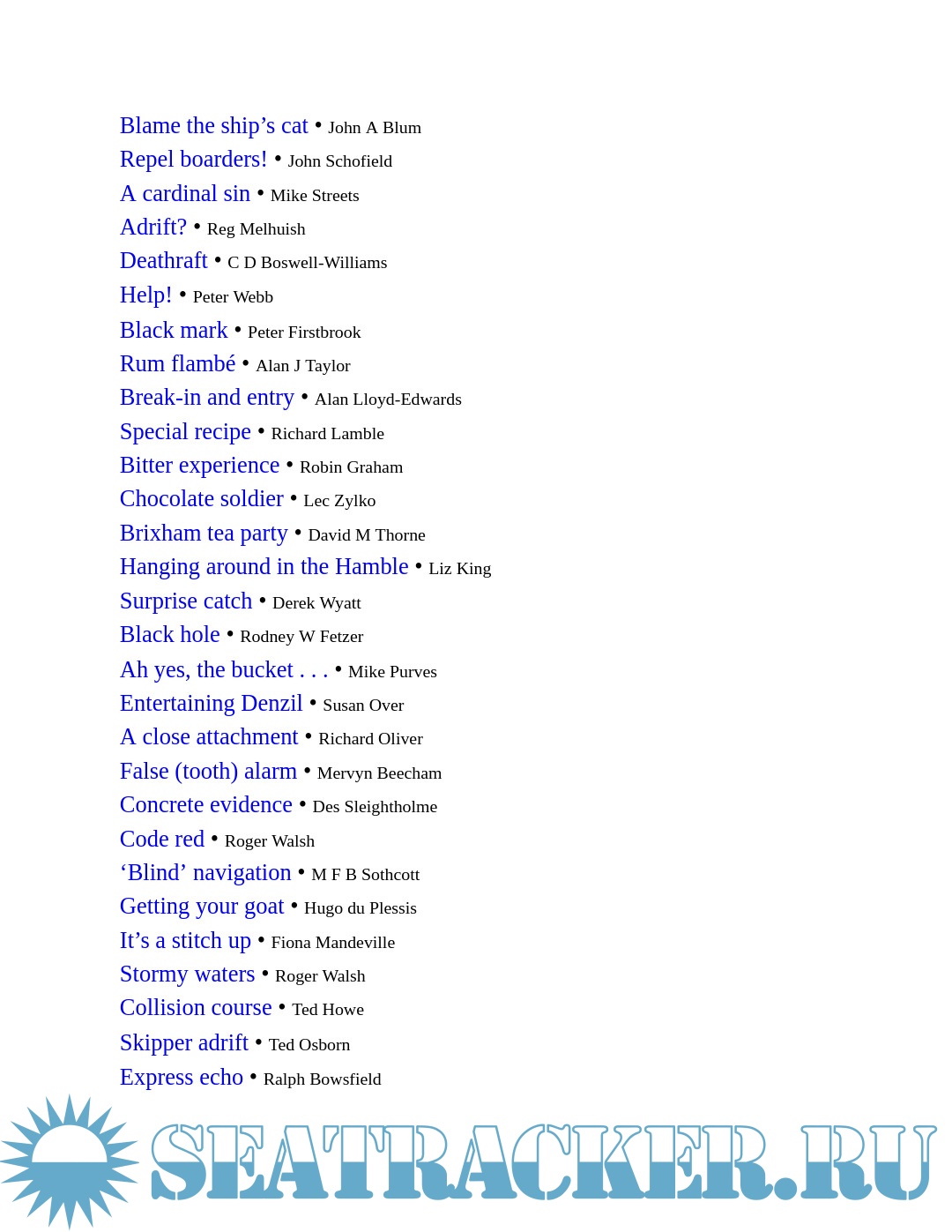 Year: 2003 Language: English Author: Gelder P. Genre: Manual Publisher: Adlard Coles Nautical Format: PDF/EPUB Quality: eBook Pages count: 142 Description: This is a wonderful cherry-picked collection of humiliating misadventures from the enduringly popular Confessional column of Yachting Monthly magazine. For over 25 years, yachtsmen have clamoured to tell the world about their most embarrassing exploits and their most shameful blunders, and the cream of the crop are collected together here in the hope that the rest of us can learn from their mistakes instead of our own - or at least have a good laugh at their expense! Shipwrecks, strandings, mutiny, getting locked in the lavatory you couldn't make them up. Counted among the contributors are no less than four former editors of Yachting Monthly, which goes to prove that worse things really do happen at sea! Accompanied by cartoons from the inimitable Mike Peyton, this collection deserves a place at every bunkside.