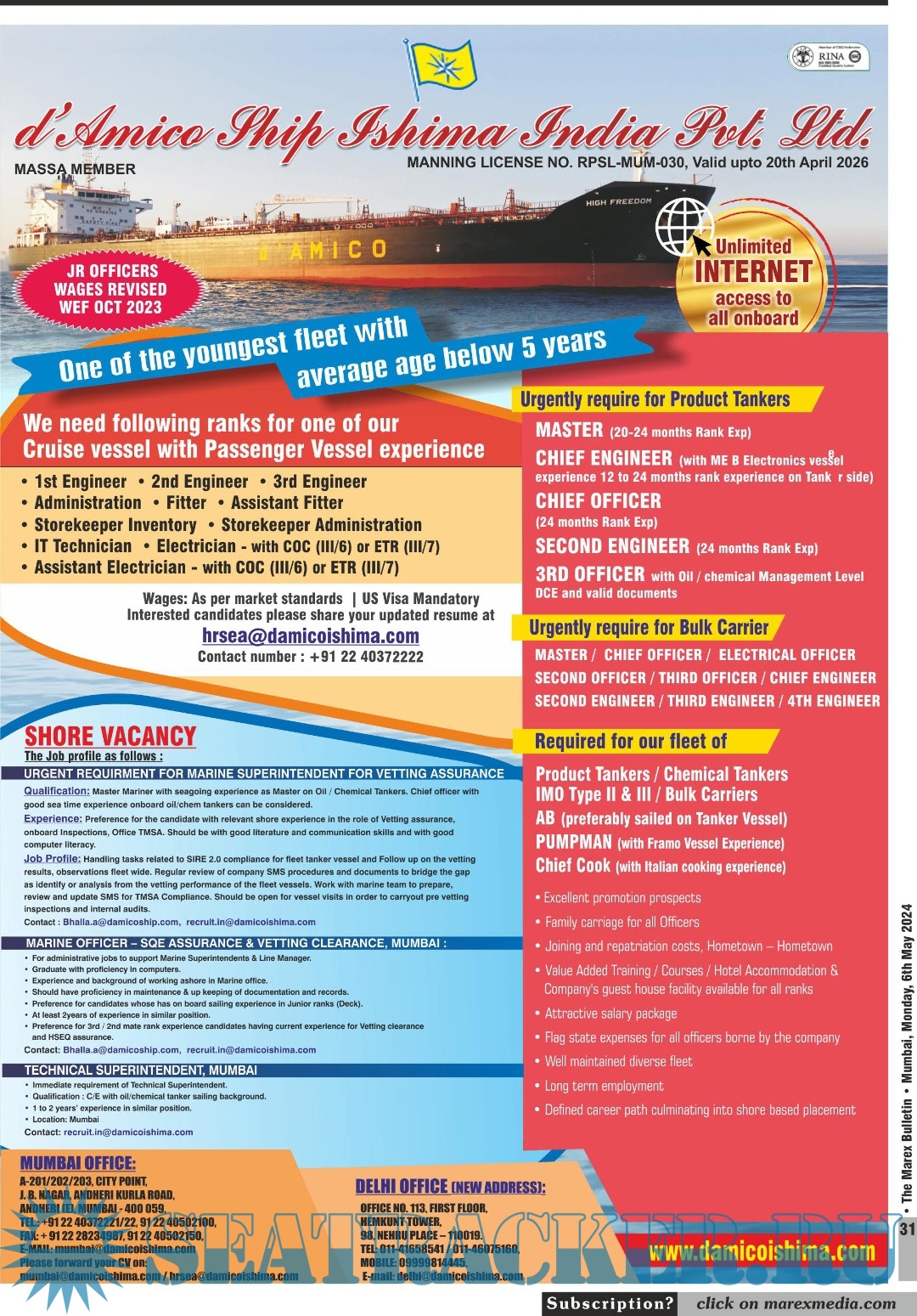 Description: The No 1 Twice weekly employment magazine for Seafarers. The Leading magazine for seafarers to locate Ship-board Employment opportunities, Training Institutes, Shipping companies.