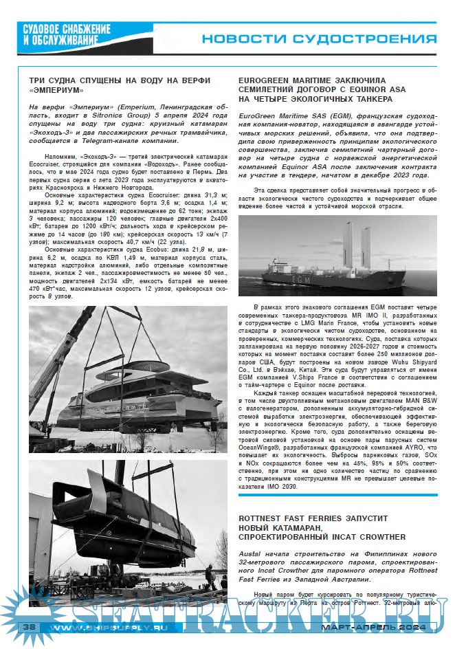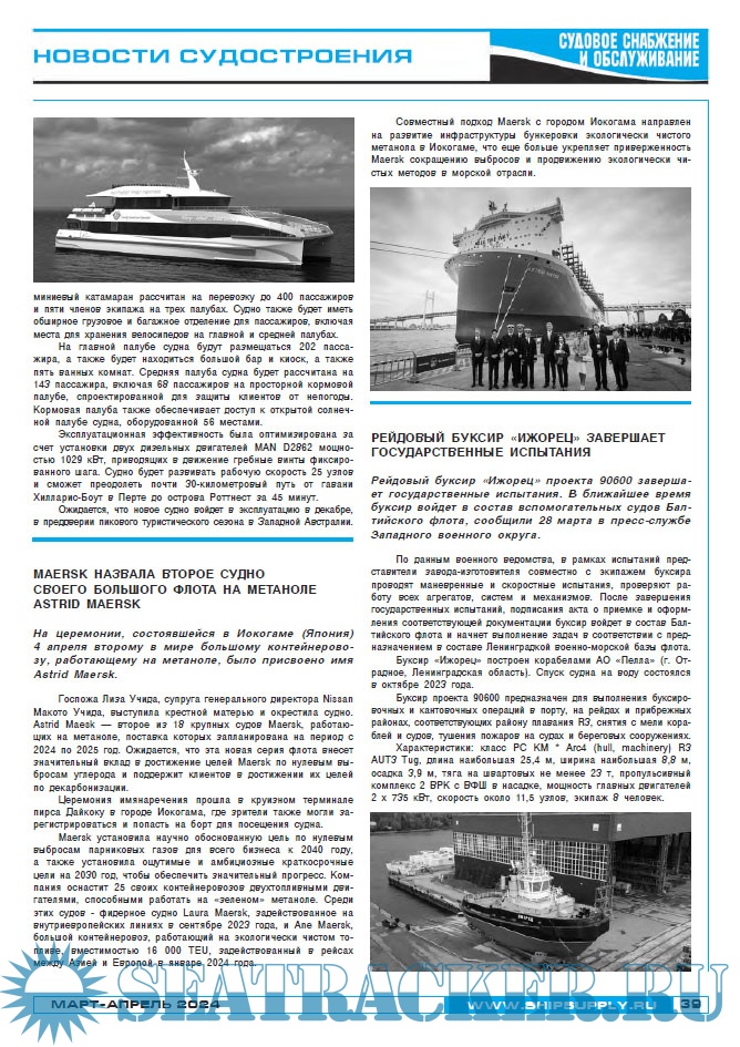 Описание: ''Судовое снабжение и обслуживание'' периодический информационный бюллетень, издается с 1999 года и в настоящее время по праву занимает одно из ведущих мест среди специализированных отраслевых печатных изданий.Бюллетень стал надежным маркетинговым инструментом для технического менеджмента судостроительных, судоремонтных и снабженческих компаний. Более 500 отечественных и зарубежных фирм рекламодателей успешно сотрудничают с журналом с целью расширения своего бизнеса.Бесспорным преимуществом является бесплатное распространение издания целевой адресной рассылкой: судостроительным и судоремонтным предприятиям; морским и речным портам; судовладельцам морского, речного, промыслового флота; производителям и поставщикам судового оборудования, снабжения и материалов; предприятиям обслуживания флота (всего более 9000 компаний РФ). В журнале представлен весь спектр судового оборудования, комплектующих, запчастей, снабжения и материалов (с указанием контактных данных фирм производителей и поставщиков).