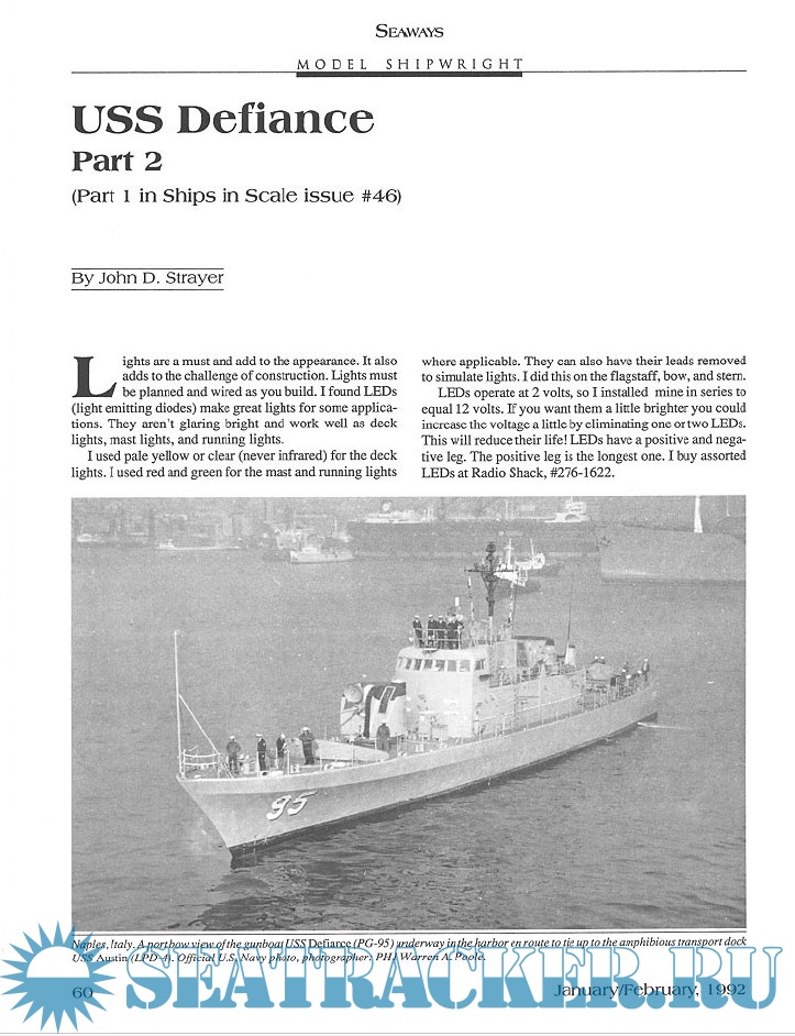 Year: 1992 Language: English Author: Scottie Dayton (Editor) Genre: Periodical (magazine) Edition: 1992-1 Format: PDF Quality: eBook Pages count: 76 Description: Seaway is the home port for Seaways Ships in Scale magazine, the leading workshop and research magazine for the ship modeler. In the magazine we explore all levels of modeling experience, all types of ships, all kinds of models, all historical eras and all construction materials