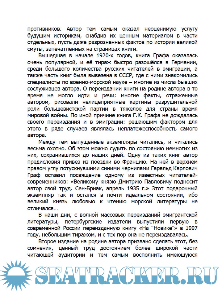 Описание: В среде русской эмиграции Гаральд Карлович Граф (1885–1966) был известен не только как бывший старший офицер эскадренного миноносца «Новик», капитан 2-го ранга, участник Русско-японской, Первой мировой и Гражданской войн, но и как автор знаменитой книги «На “Новике”. Балтийский флот в войну и революцию», изданной в Германии в 1922 году. Успех книги был феноменален. Ее читали обыватели, бывшие офицеры русской армии и флота, великие князья, либералы русского зарубежья. Читали даже преподаватели советских военных академий и работники ОГПУ по долгу службы…