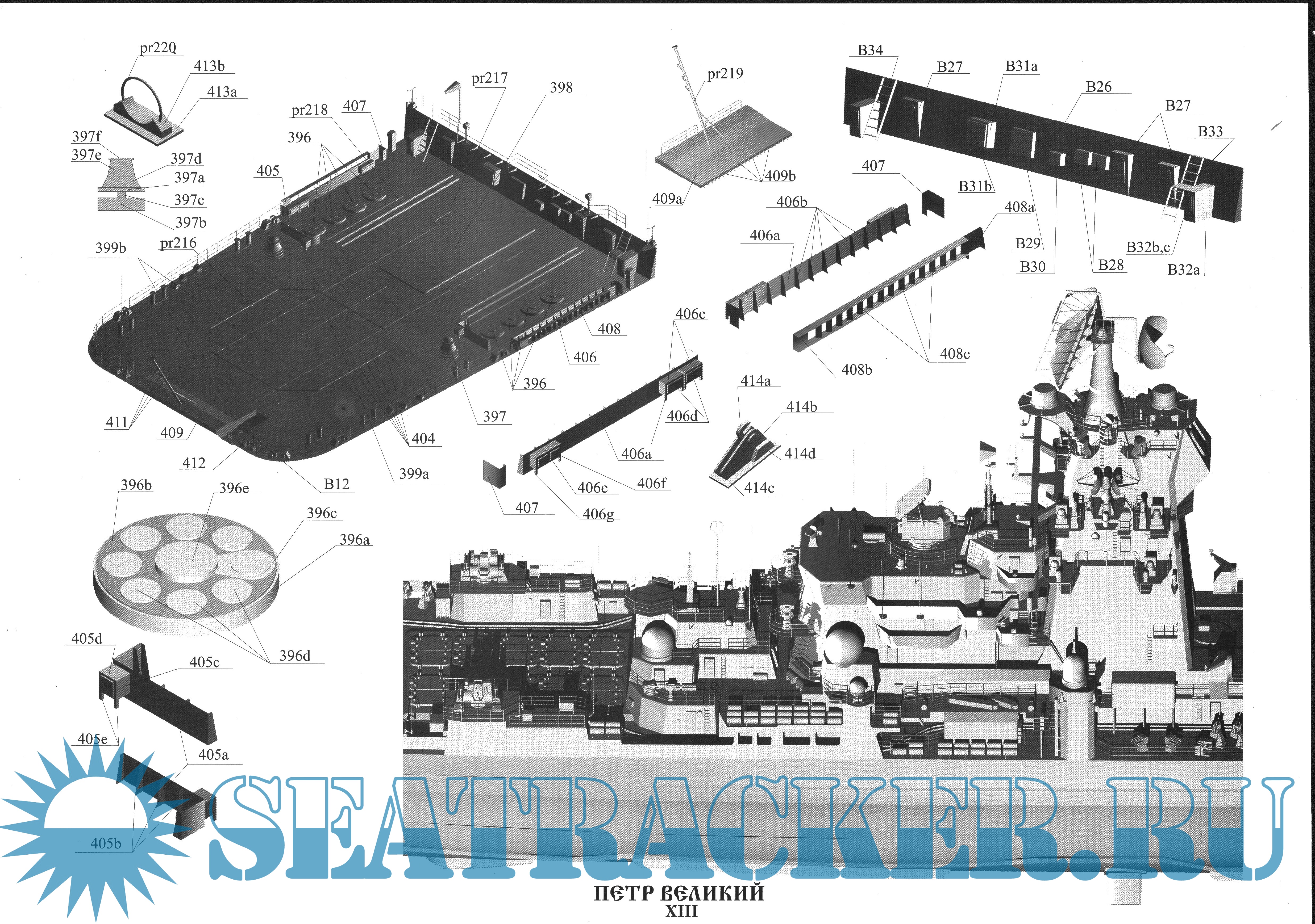 57 листов цветных выкроек и инструкций для изготовления бумажной модели ТАРК Пётр Великий