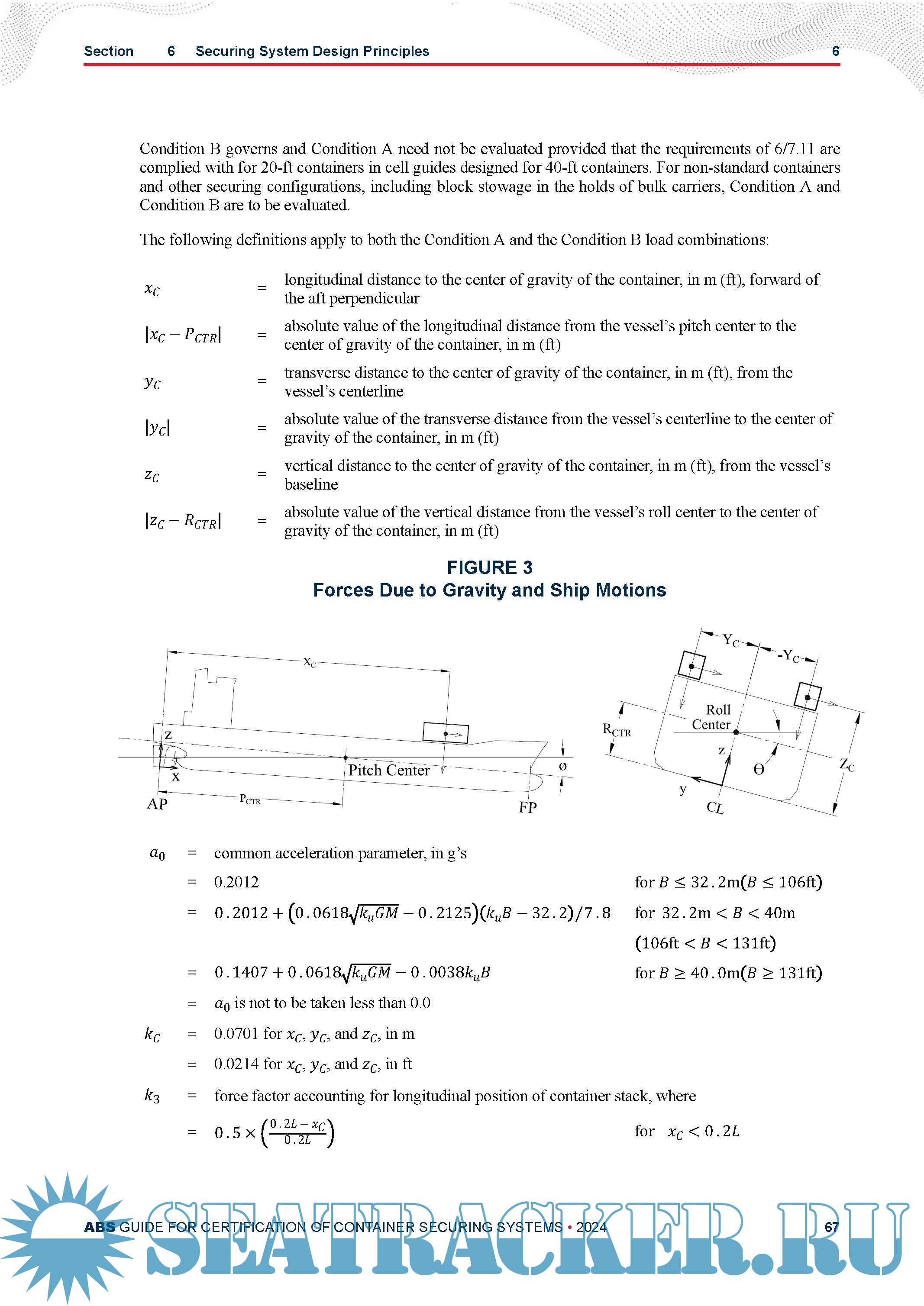 CLP-V(PARR) notation. The 2024 edition removed the limitation in Subsection 6/5 that the nonlinear procedure is to be used only for external lashings. The May 2024 edition adds factors for large bilge keels and anti-rolling tanks in the calculation of roll motions.