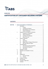 Description: The Guide for Certification of Container Securing Systems was first published by ABS with input andadvice from industry. When requested by the Owner, ABS will issue certificates for container securingsystems which have been constructed and installed according to the requirements of this Guide. However,such a certification is not a classification requirement.
