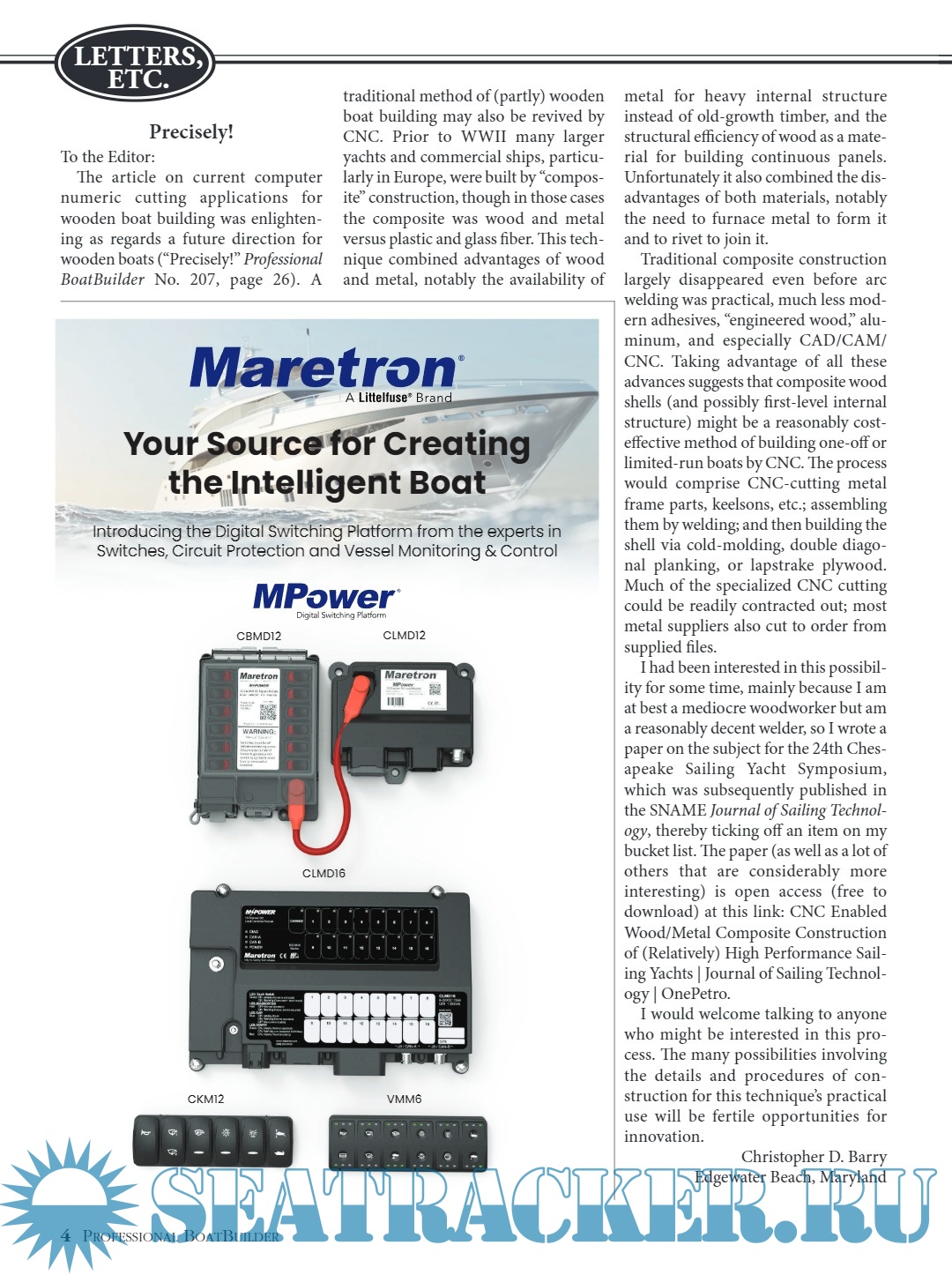 Year: 2024 Language: English Author: Professional BoatBuilder Genre: Periodical (magazine) Edition: Number 209 / June - July Format: PDF Quality: eBook Pages count: 78 Description: Professional BoatBuilder magazine is written and edited for boatbuilders, repairers, designers, and surveyors.Published six times a year, by WoodenBoat Publications, Inc., it focuses on materials, design, and construction techniques and repair solutions chosen by marine professionals.Regular technical articles provide detailed, real-world examples to improve the efficiency and quality of their work. Professional BoatBuilder has an audited circulation of 24,000 readers, worldwide.