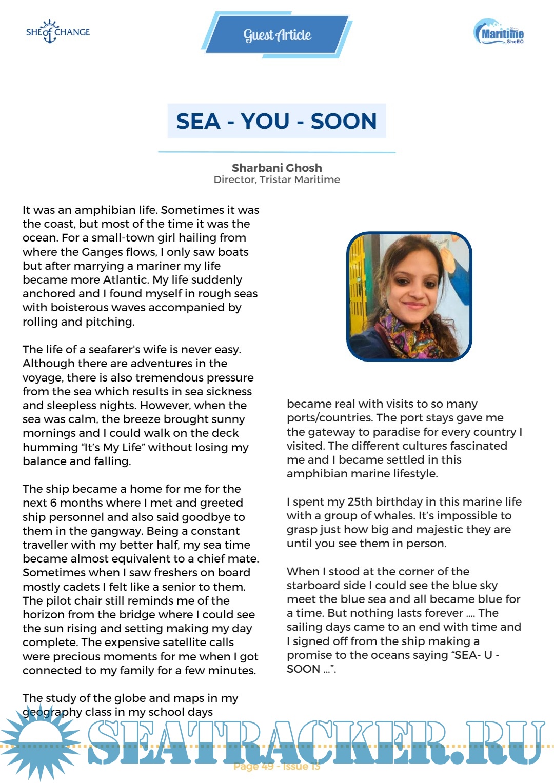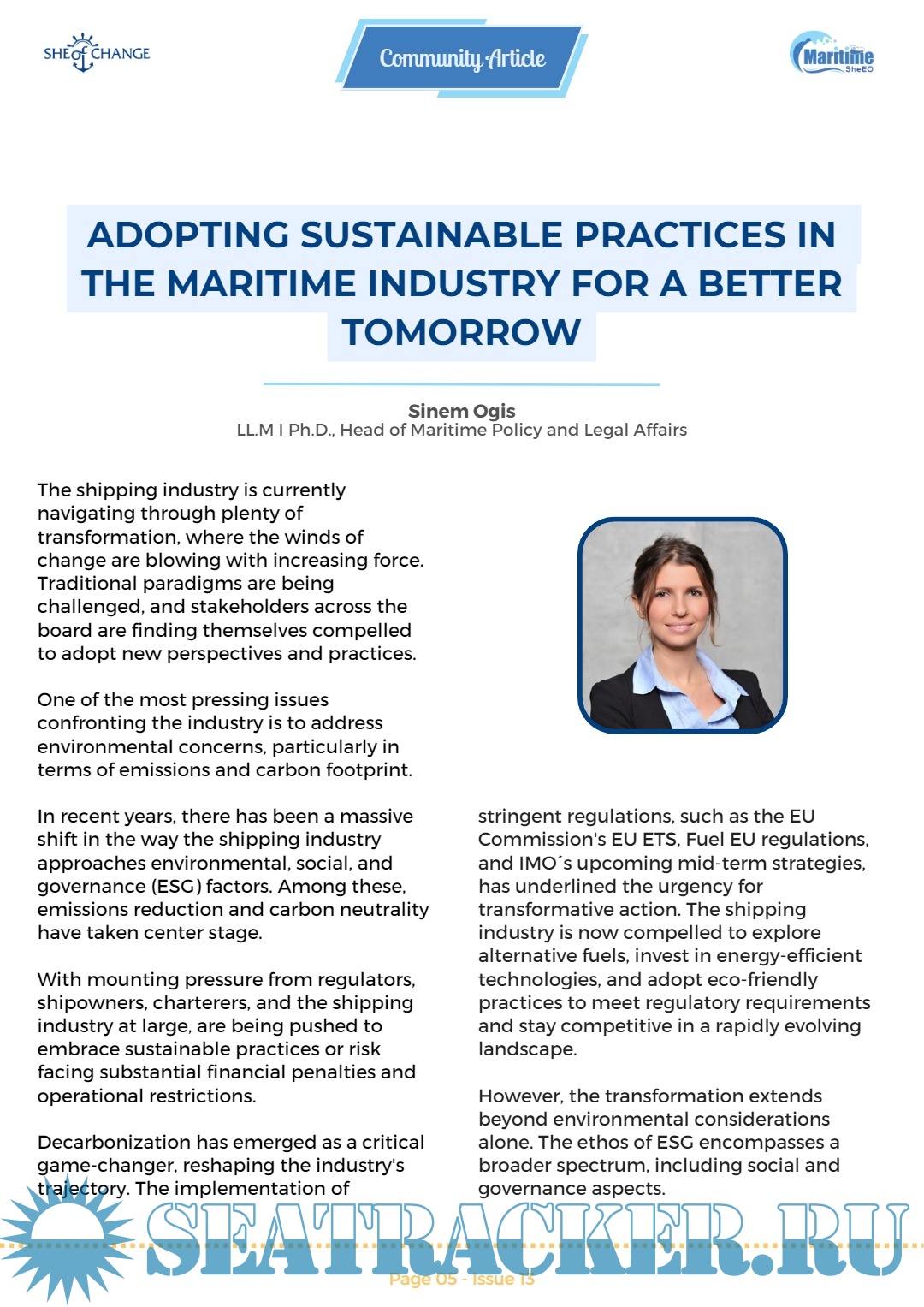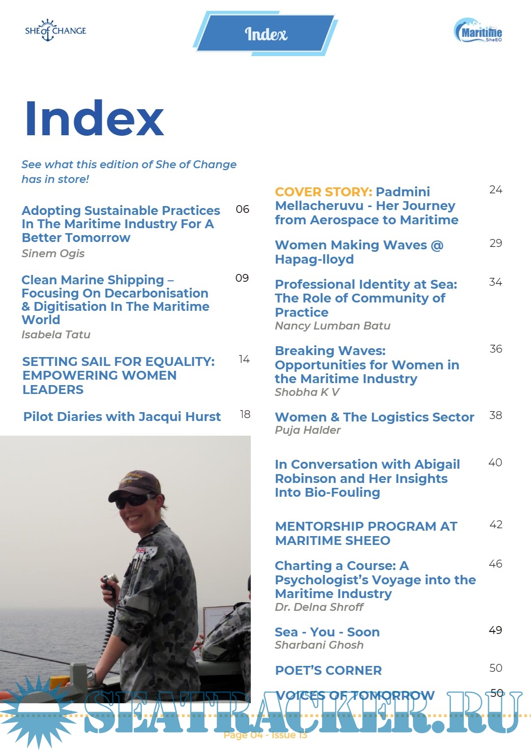 Year: 2024 Language: English Author: Maritime SheEO Genre: Periodical (magazine) Edition: Issue 13 | May Format: PDF Quality: eBook Pages count: 56 Description: This issue is dedicated to honoring the remarkable contributions and achievements of women in the maritime industry. The maritime sector has traditionally been male-dominated, but the tide is turning as more and more women are breaking barriers and making a significant impact in this field. From ship captains to naval engineers, from maritime lawyers to port authorities, women are carving out their place and redefining what it means to excel in the maritime industry. In this edition, we bring you inspiring stories of women who have navigated the rough waters of gender bias and stereotypes to emerge as leaders and trailblazers in the maritime world. Their journeys are a testament to resilience, determination, and the power of breaking through glass ceilings. As we shine a spotlight on these incredible women, let us also reflect on the progress made and the work that still lies ahead in achieving gender equality and empowering more women to thrive in maritime careers. Let us continue to support and uplift each other as we sail towards a more inclusive and diverse maritime industry.