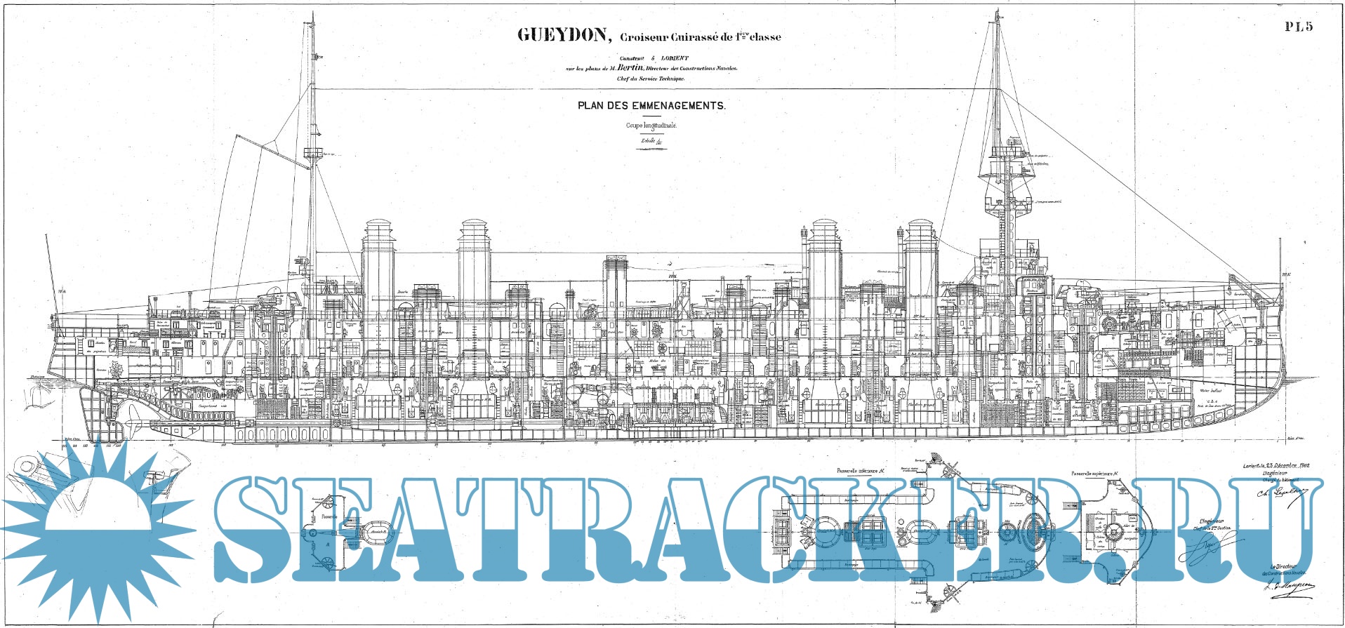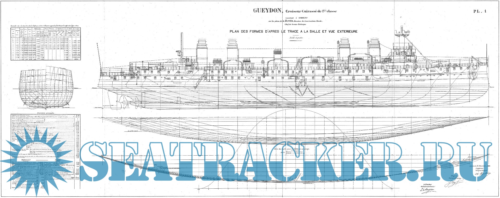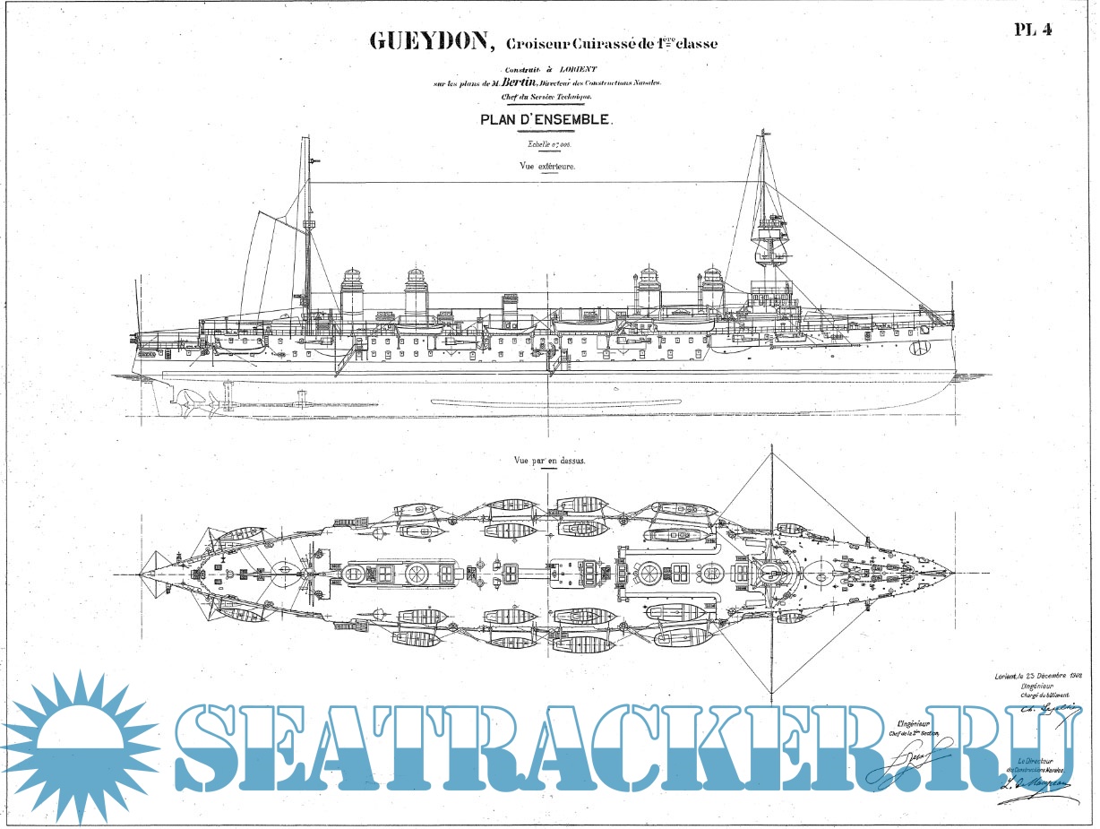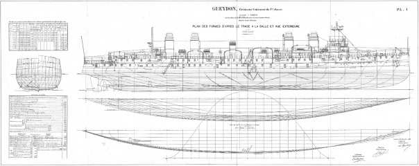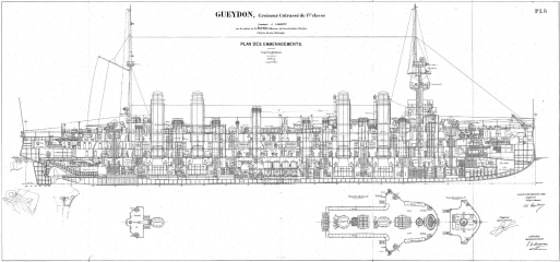 Архивные чертежи французского крейсера 1-го ранга GUEYDON 1899 год