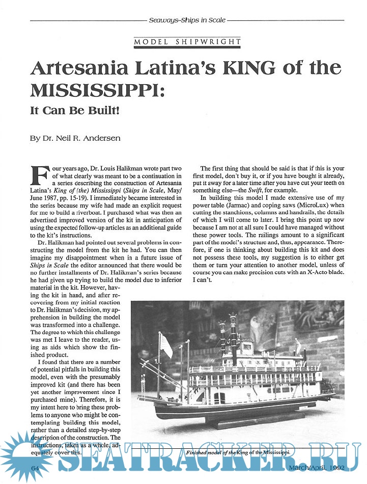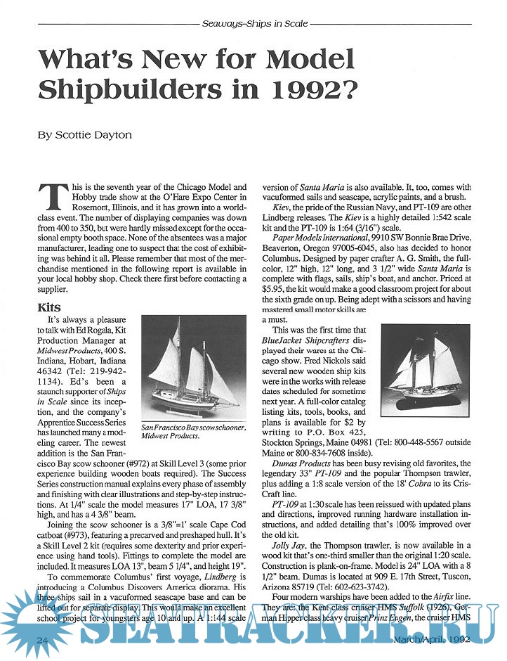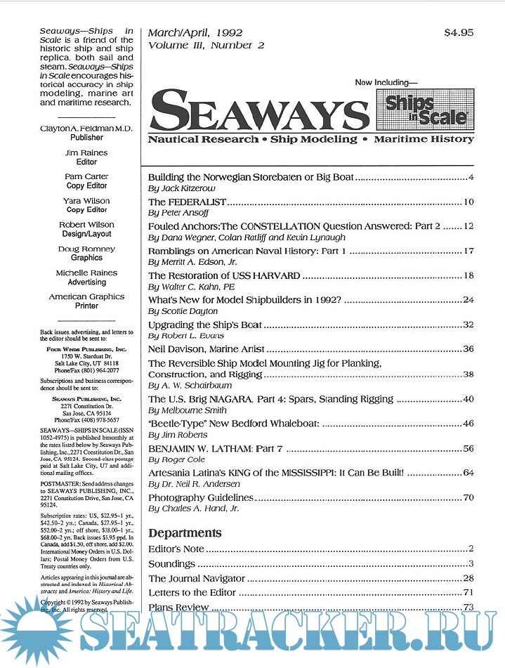 Year: 1992 Language: English Author: Scottie Dayton (Editor) Genre: Periodical (magazine) Edition: 1992-2 Format: PDF Quality: eBook Pages count: 76 Description: Seaway is the home port for Seaways Ships in Scale magazine, the leading workshop and research magazine for the ship modeler. In the magazine we explore all levels of modeling experience, all types of ships, all kinds of models, all historical eras and all construction materials