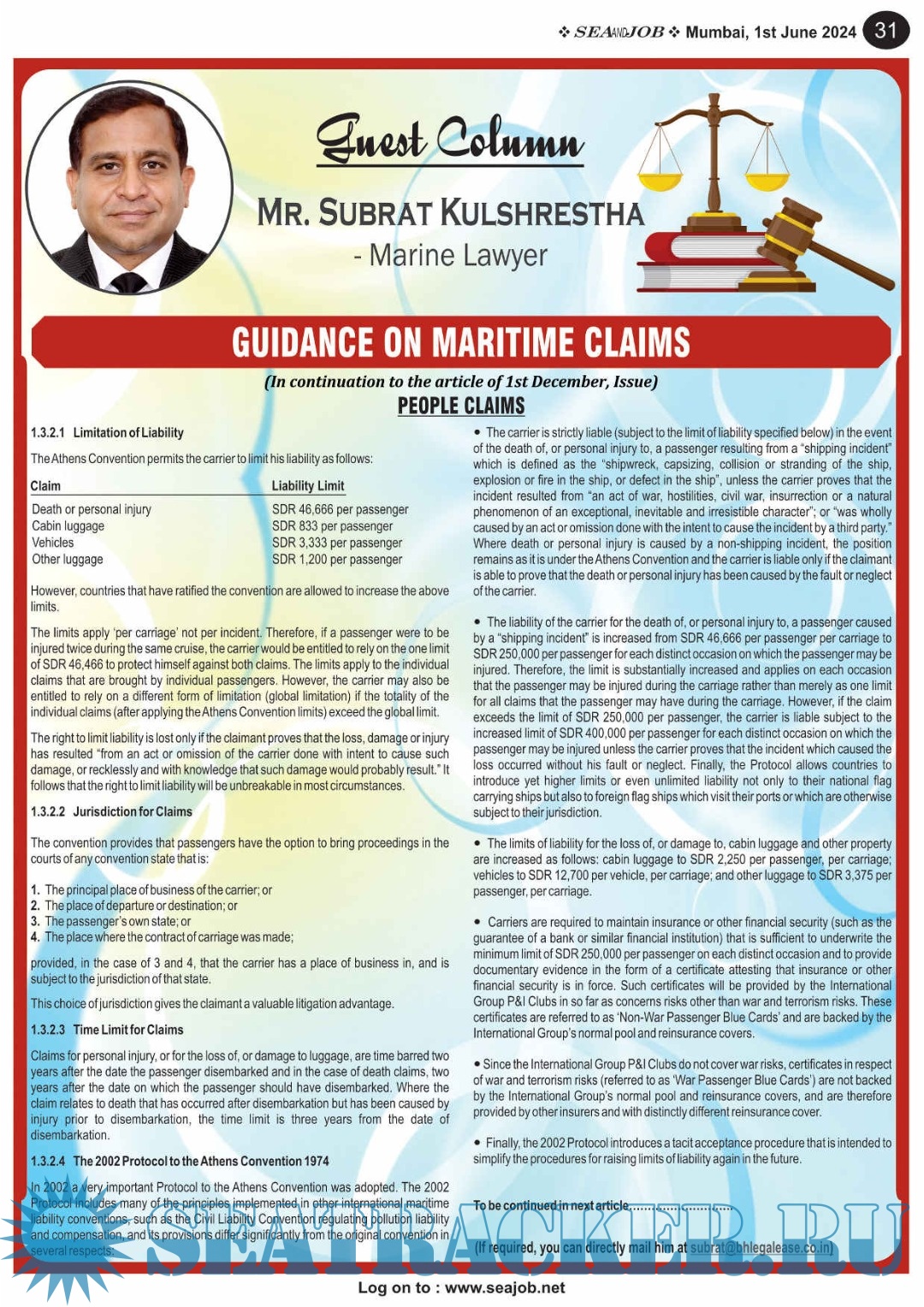 Year: 2024 Language: English Author: Sea Line Group Genre: Periodical (magazine) Edition: Vol. XVII, No. 11/24 Format: PDF Quality: eBook Pages count: 76 Description: The Sea and Job magazine launched in May 2007, was the second venture of Sea Line Group succeeding 'seajob.net' bringing the much renowned essence to the Group, the Sea and Job Magazine quickly gained popularity, becoming the No. 1 Shipping Magazine that came to be widely circulated all over India.Sea and Job over the years has evolved as the most trusted, ethical, objective and read maritime publication that possesses a large database of subscribers from various verticals in the industry.The magazine provides informative and interesting articles covering not just the shipping world but also the world outside it. Sea and Job is also a medium for the shipping/ manning companies to advertise marine jobs and also to promote their organization by publicizing internal activities like seminars, sports events and parties.Some notable endeavors of the magazine include the Know Your Recruiter Column, the Sailing Episodes Column and the Marine Insights section. The consistent efforts and the dedication to provide extraordinary services to the industry has resulted in the magnifying popularity and patronage of Sea and Job. Additional info: 1-15 June 2024.