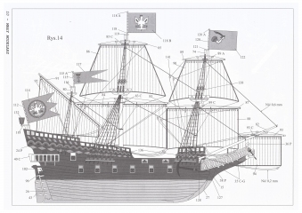 18 листов цветных выкроек и инструкций для изготовления бумажной модели польского парусного корабля "Wodnik" в масштабе 1:100Скриншоты