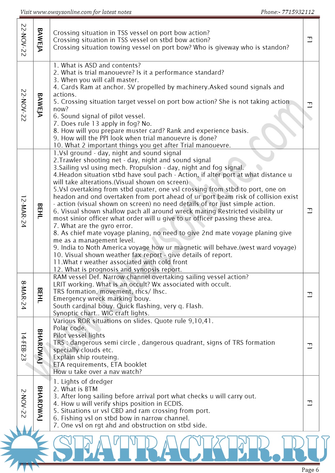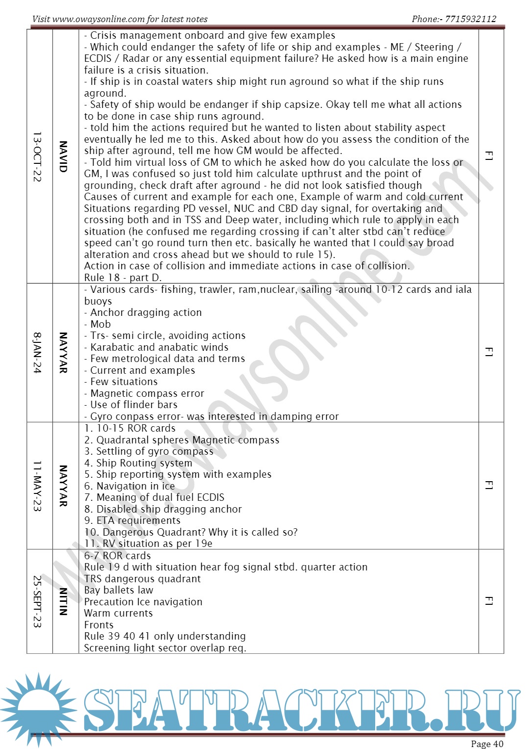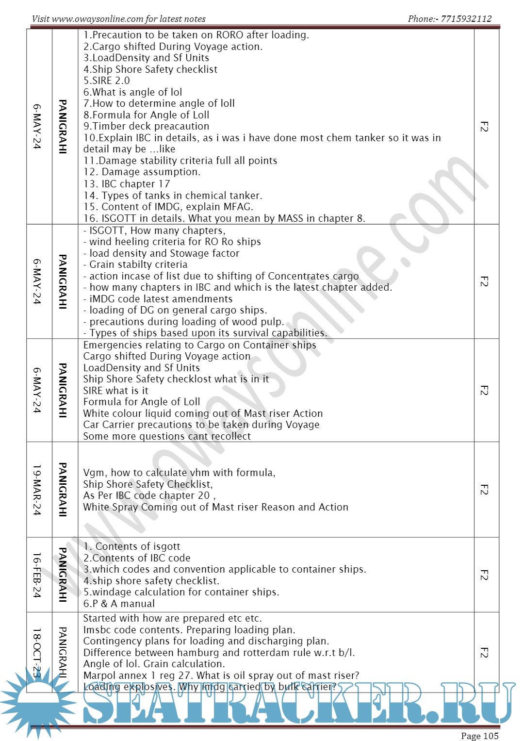 Orals Question Bank (March 2024) for Chief Mate F.G. Mercantile Marine Department (MMD), India…