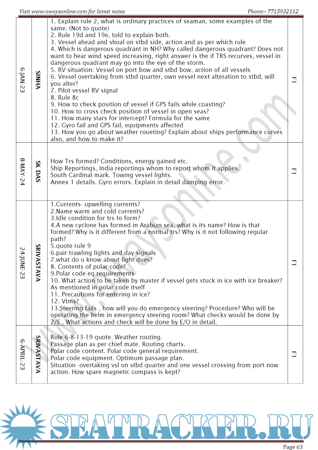Orals Question Bank (February 2024) for Chief Mate F.G. Mercantile Marine Department (MMD), India…