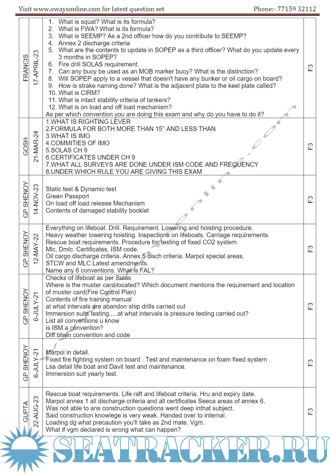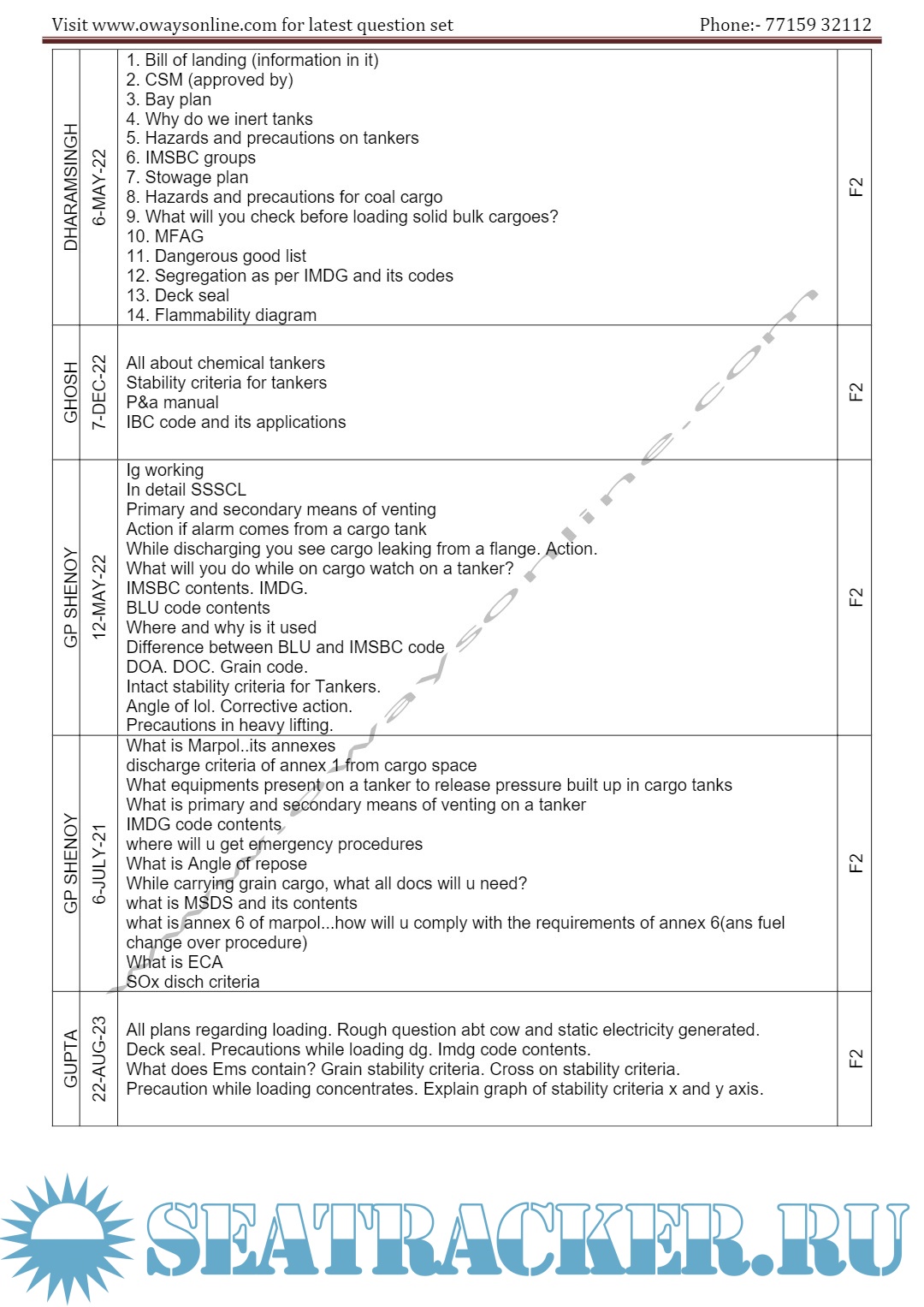 ➢ You might find some questions quite old, as those surveyors still comes in MMD/ D.G.However they are taking orals of other candidates and not Second Mates.However, if the surveyor of Second mates doesn’t come, they might take your orals.