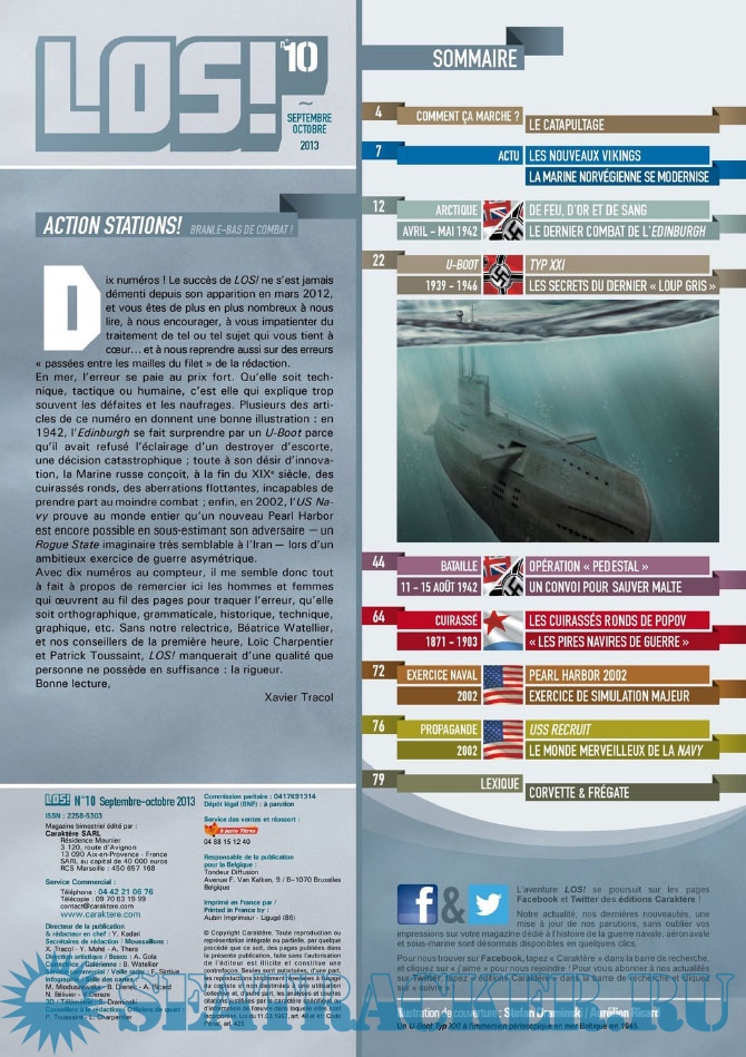 Description: LES ÉDITIONS CARAKTÈRE PRENNENT LE LARGE EN LANÇANT UN NOUVEAU MAGAZINE CONSACRÉ À LA GUERRE NAVALE !Les sujets passionnants ne manquent pas et LOS ! met un point d’honneur à les présenter au lecteur comme cela n’a jamais été fait dans la presse française jusqu’à présent. Un seul mot d’ordre pour l’équipe rédactionnelle : rigueur scientifique et présentation ludique !S’appuyant sur un fond photographique d’exception, sur des plans de bateaux et d’avions, les éditions Caraktère innovent une fois de plus en vous proposant aussi des vues 3D détaillées, le tout au service de textes soigneusement rédigés par des auteurs spécialisés. Vous comprendrez ainsi comment fonctionne un submersible, comment se déroule un combat naval, comment est conçu un cuirassé ou comment attaquent les avions-torpilleurs !Revivez au fil des pages l’aventure humaine exceptionnelle des matelots de la marine marchande affrontant les U-Boote en Arctique, ou celle des pilotes embarqués sur les porte-avions américains et japonais. Lisez les exploits des hommes-grenouilles italiens en Méditerranée, des équipages des vedettes lance-torpilles dans la Manche, des sous-marins soviétiques de la guerre froide ou des grands cuirassés de 1914-18