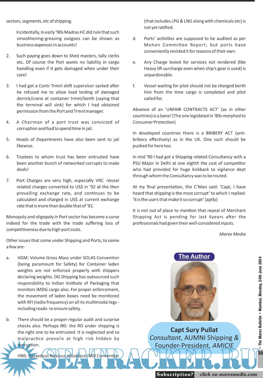 Year: 2024 Language: English Author: Marex India Genre: Periodical (magazine) Edition: Vol.XXIV | No. 51/24 Format: PDF Quality: eBook Pages count: 44 Description: The No. 1 Twice weekly employment magazine for Seafarers. The Leading magazine for seafarers to locate Ship-board Employment opportunities, Training Institutes, Shipping companies. Online version: https://issuu.com/marexmediapvtltd