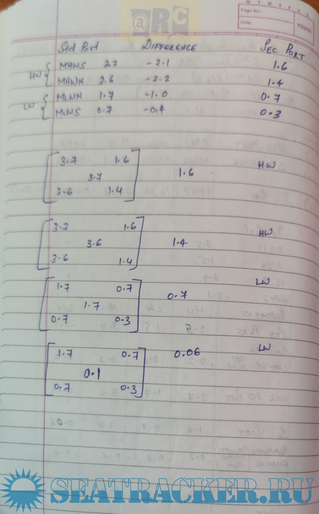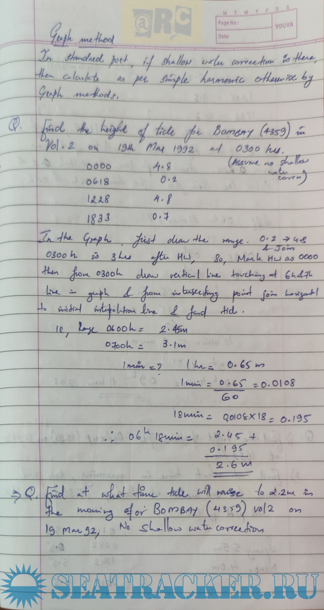 Description: Paper: Metrology Solved Numericals for Tide Calculation (Handwritten Notes)from Past Question Papers of Mercantile Marine Department (MMD), India Examinations for Phase I (Chief Mate F.G.)