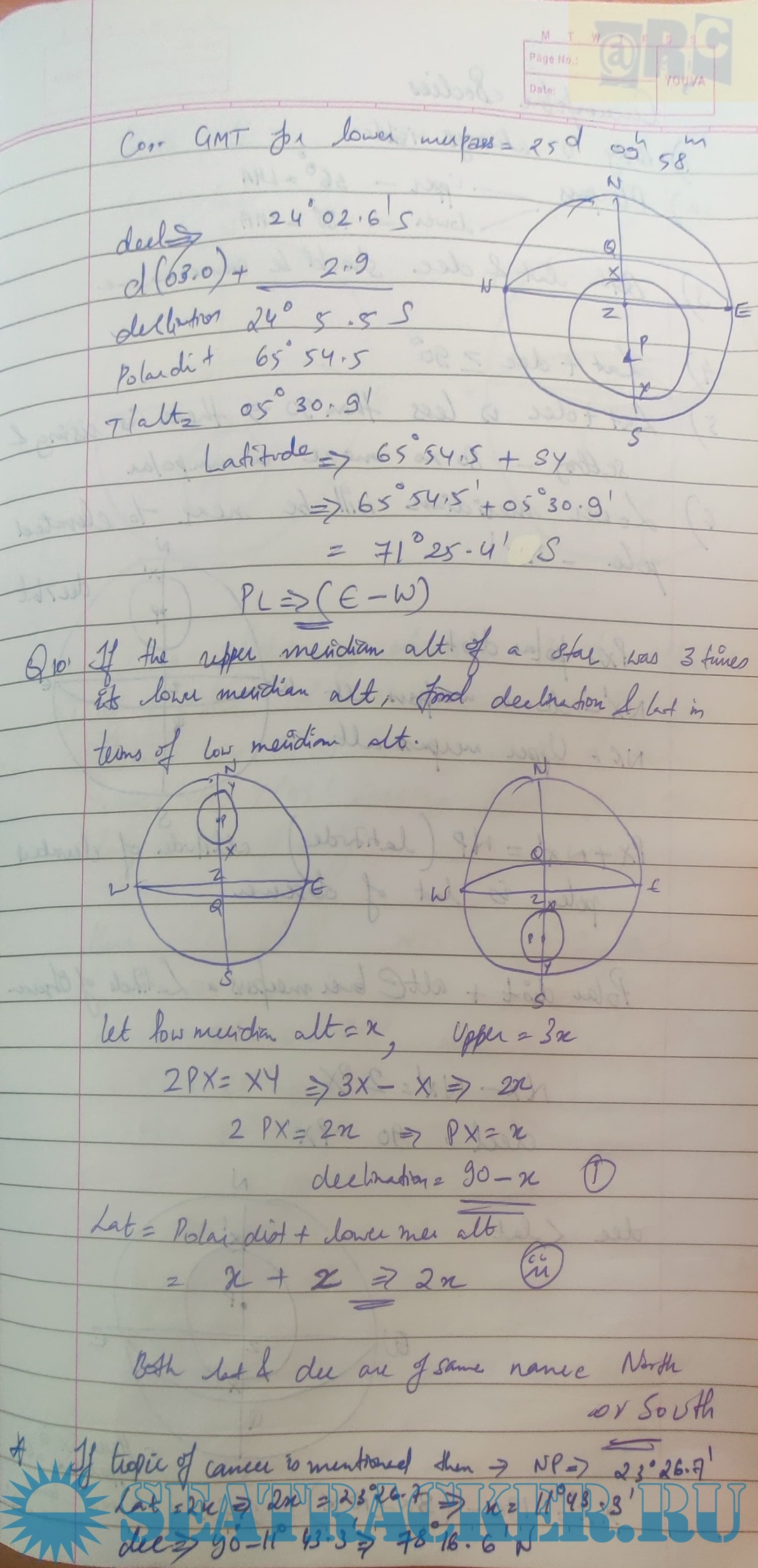 Celestial Navigation Section-B Question no. 5 & 6 Solved (2019-2017) from Past Question Papers of…