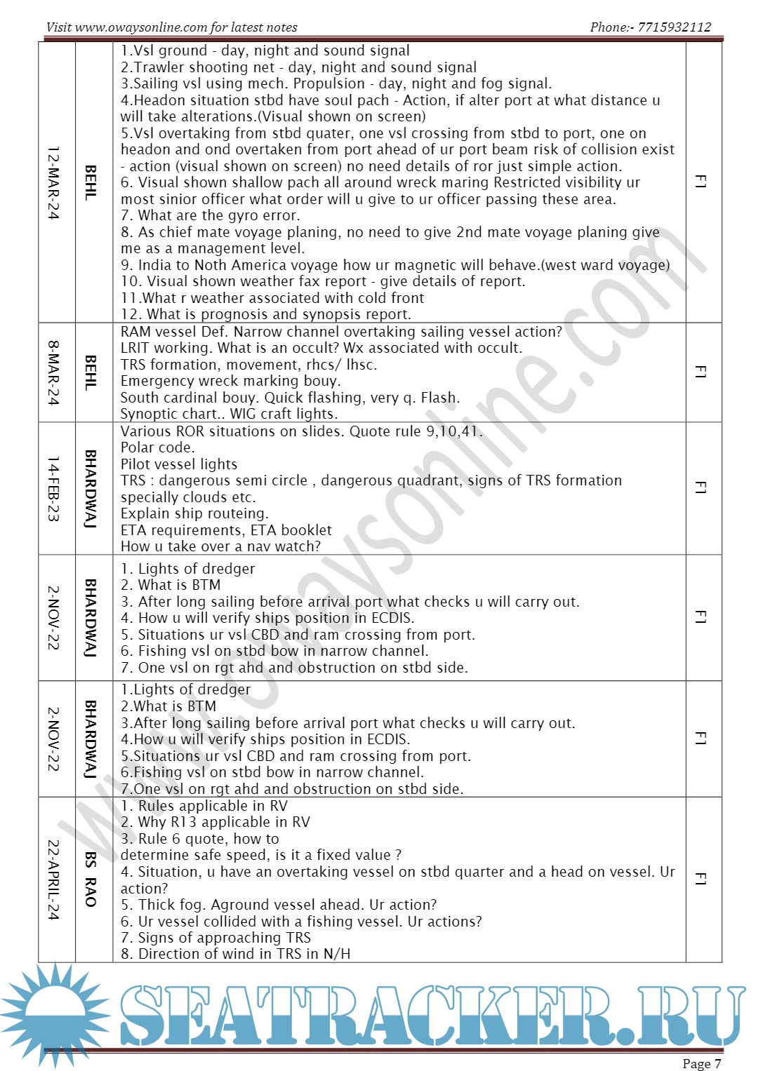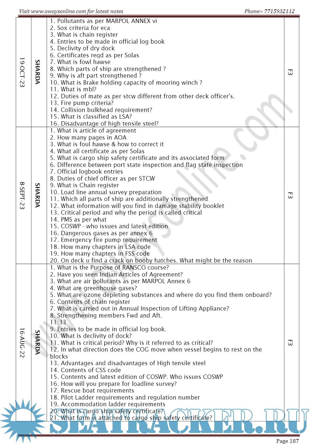 Orals Question Bank (July 2024) for Chief Mate F.G. Mercantile Marine Department (MMD), India Examinations - Oways Online [2024, PDF]