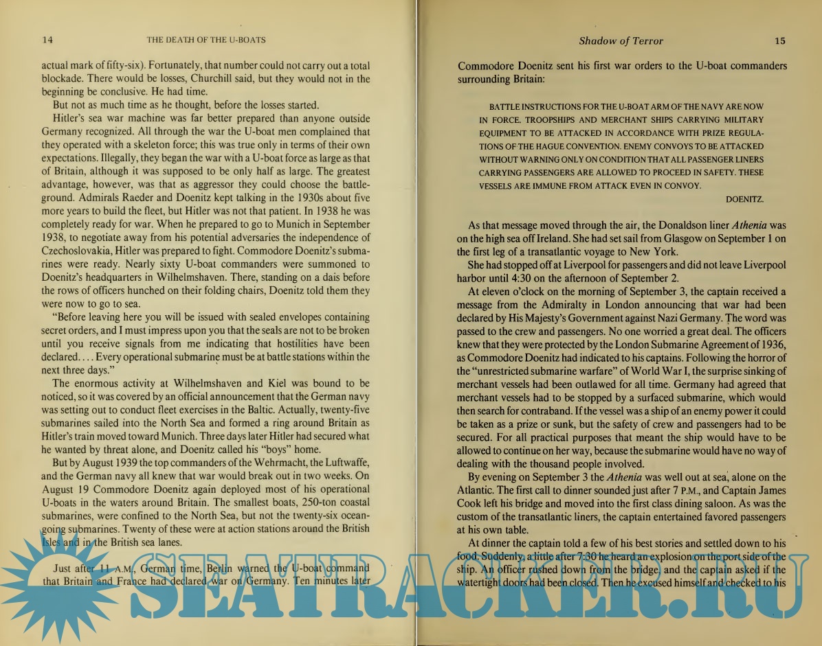 Description: From the sinking of the passenger liner Athenia to the espionage ring that sent military secrets from Canada to Germany, this book tells the story of the U-boat wars, focusing on weapons, tactics, and commanders