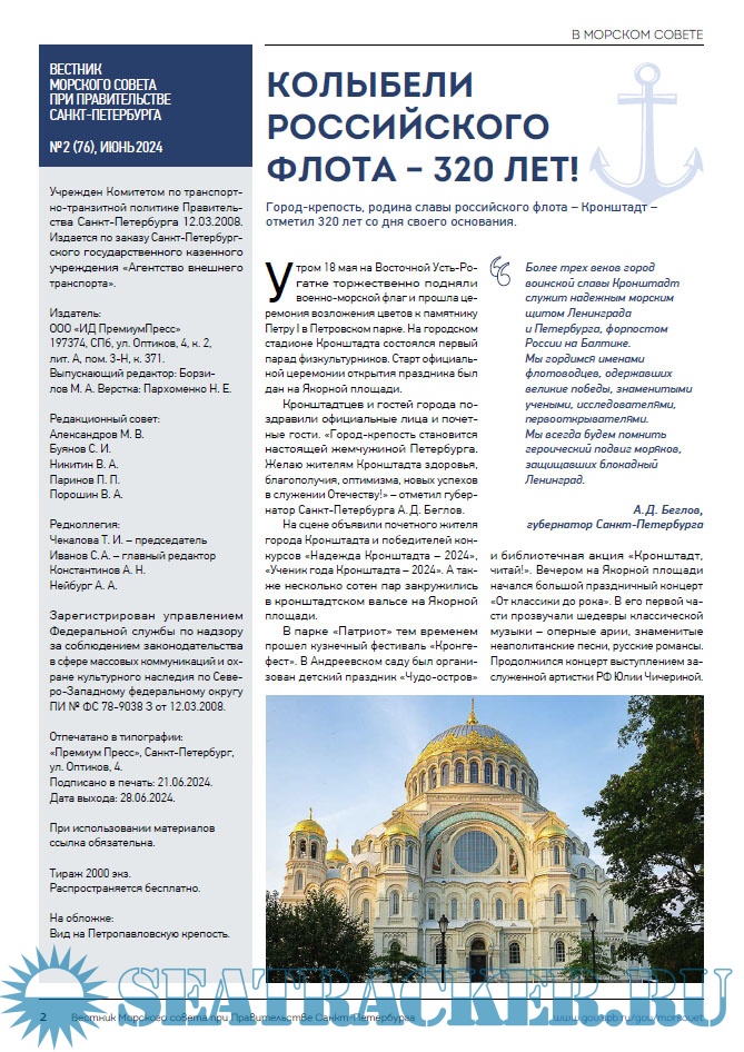 Описание: Целью информационного печатного издания является информационное освещение всех направлений морской деятельности Санкт-Петербурга: морской и речной транспортной деятельности, военно-морской деятельности, деятельности по эксплуатации портовой инфраструктуры, судостроения, деятельности по обеспечению экологической безопасности морского и речного судоходства, морского образования и науки, морского и речного туризма, парусного спорта и маломерного флота, деятельности по изучению, освоению и использованию Мирового океана и многое другое.