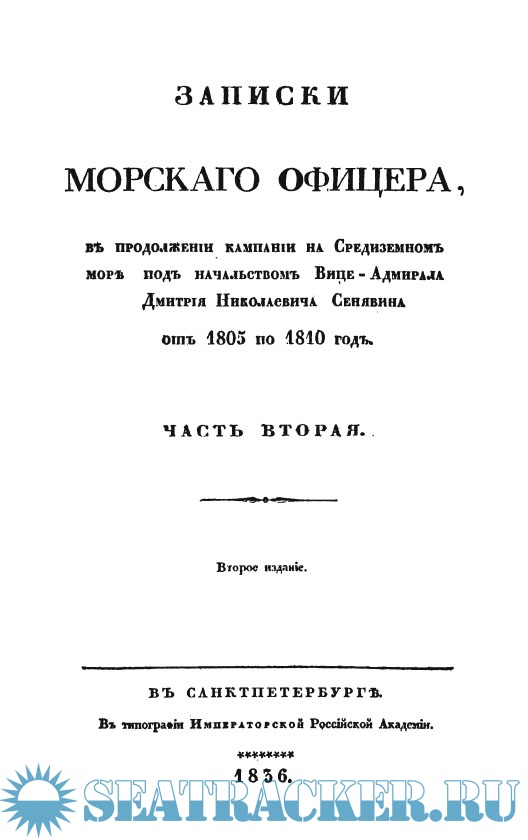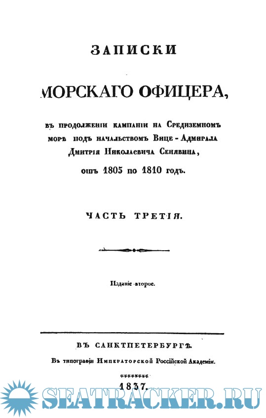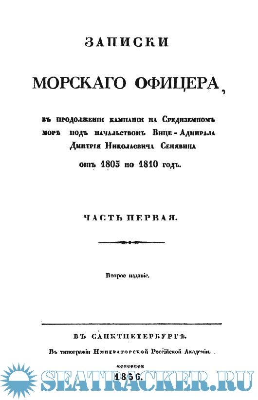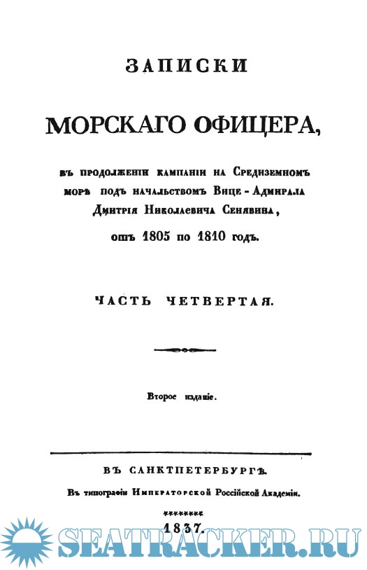 Записки морскаго офицера, в продолжении кампании на Средиземном море под начальством вице-адмирала Дмитрия Николаевича Сенявина от 1805 по 1810 год (4 части).