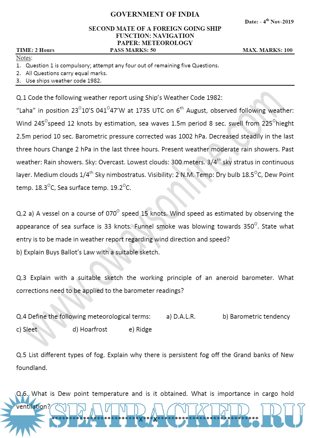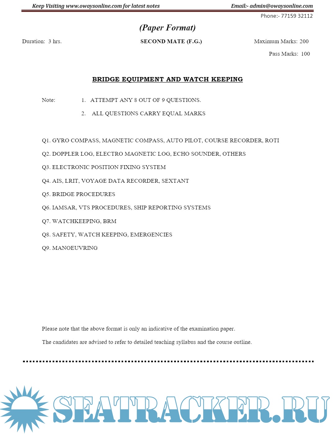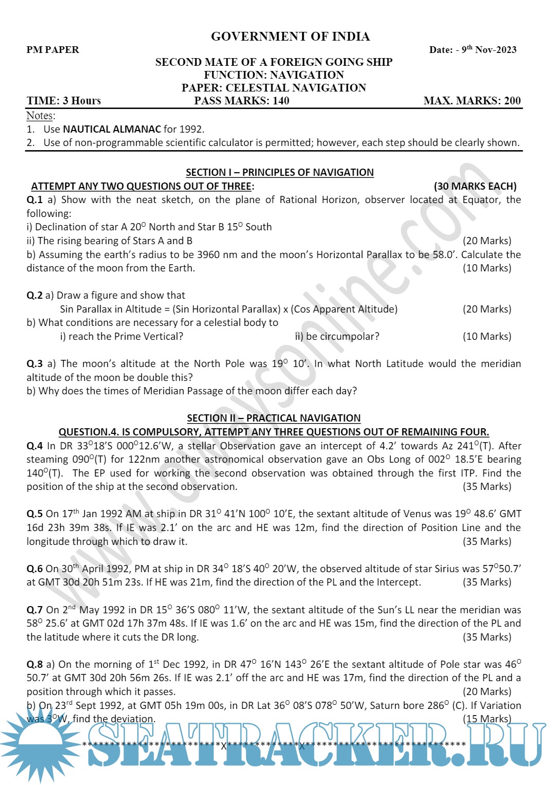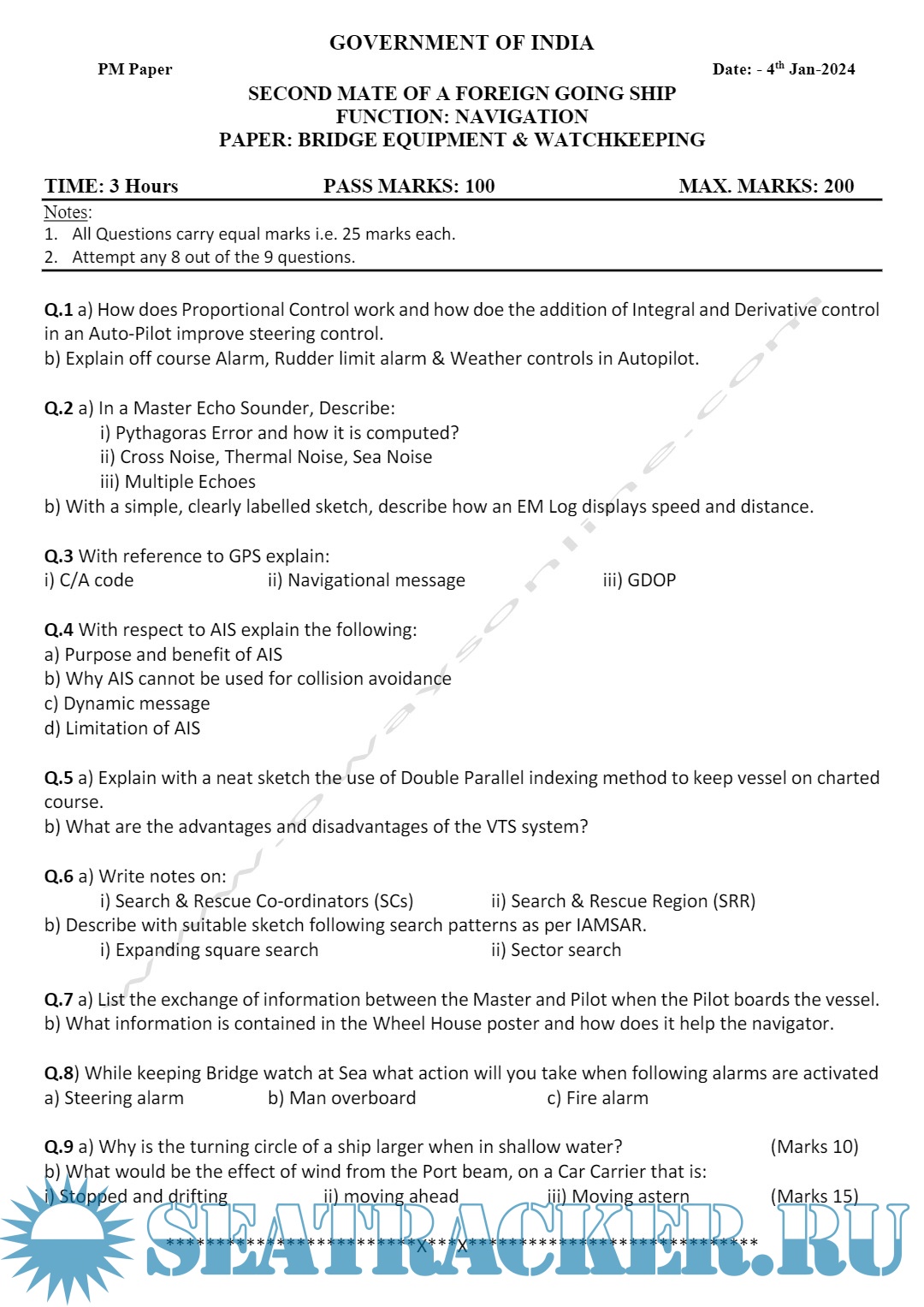 Question Paper Set (May 2024) for Second Mate (F.G.) Mercantile Marine Department (MMD), India Examinations