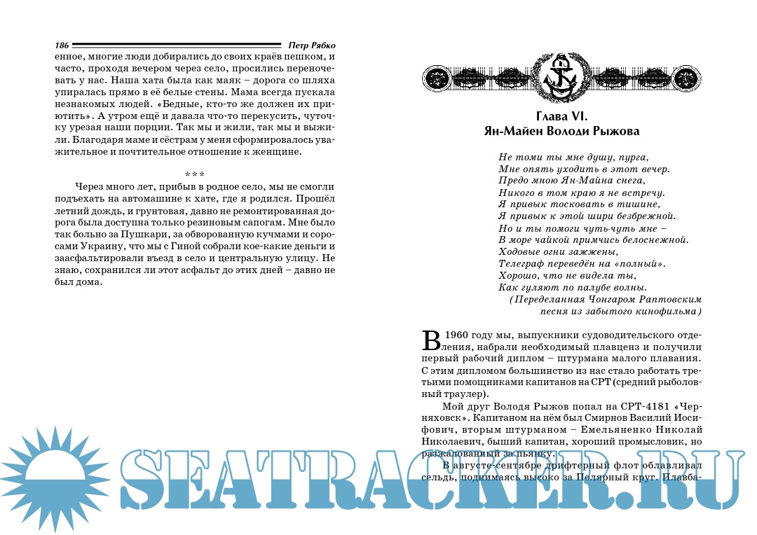 Описание: Книга воспоминаний капитана дальнего плавания Петра Рябко из Клайпеды, плававшего на рыболовецких судах.