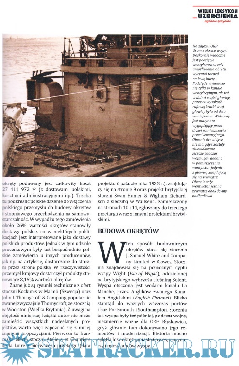 Year: 2021 Language: Polish Author: Maciej Tomaszewski, Anrdzej Ciszewski Genre: History Publisher: Edipresse Polska S.A. Edition: Wielki Leksykon Uzbrojenia Wydanie Specjalne Tom 2 Format: PDF Quality: eBook Pages count: 124 Description: Эскадренные миноносцы типа Grom («Гром») по праву считались лучшими кораблями ВМС Польши и одними из мощнейших эсминцев Второй мировой войны. Построенный по последнему слову техники, эсминец Błyskawica («Блыскавица») прошёл всю Вторую мировую войну и снискал боевую славу.