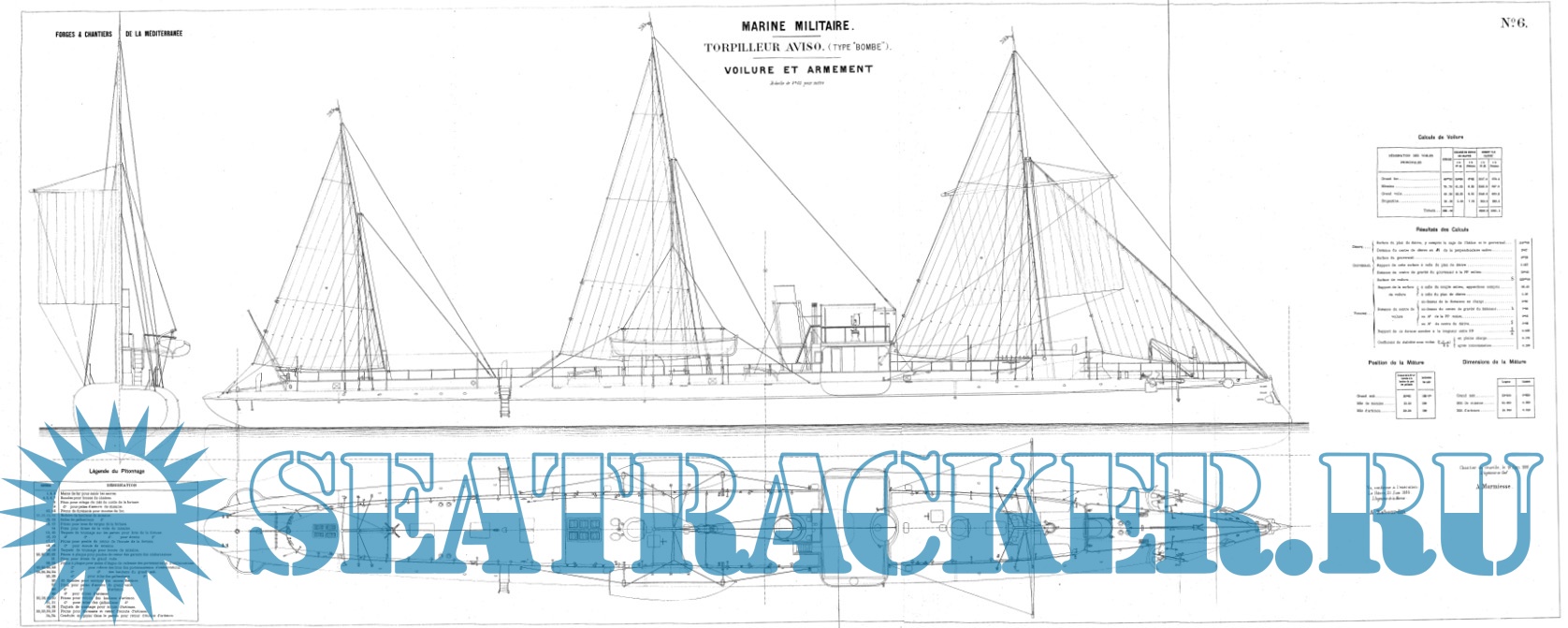 Архивные чертежи миноносца BOMBE 1885 год (Франция) - нет данных [1885, TIF]