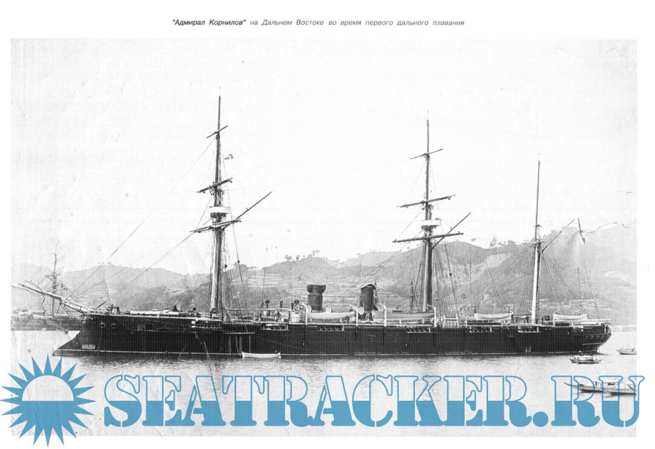 Двадцать лет содрогалась она под топотом многих сотен ног сменившихся в команде матросов, на ней школу службы, плаваний и боевой подготовки проходили кадеты и гардемарины последних поколений старого флота. С честью пронес корабль по океанам данное ему имя одного из самых ярких представителей отечественной флотоводческой школы - вице-адмирала Владимира Алексеевича Корнилова.