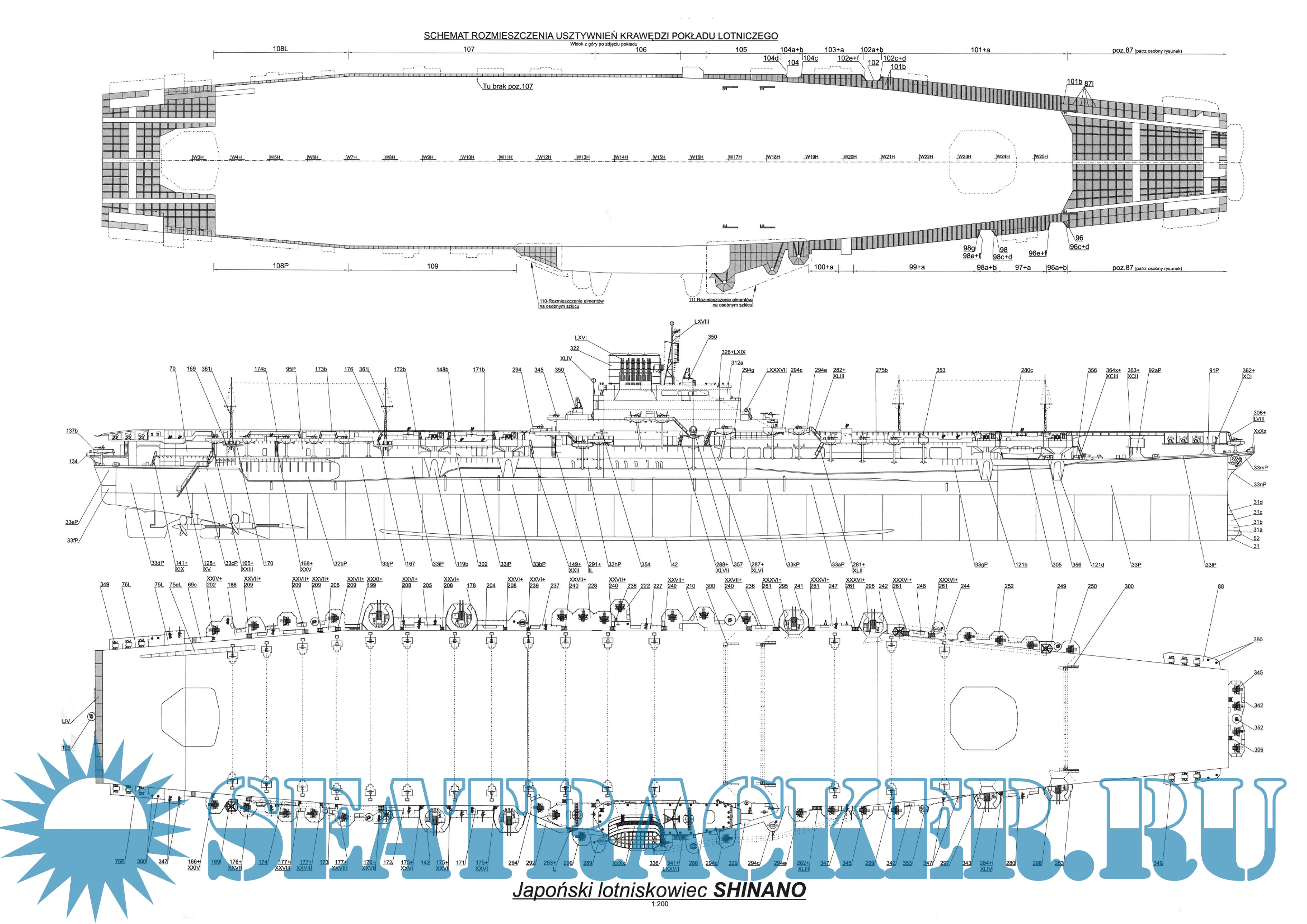 89 страниц цветных выкроек и инструкций для изготовления бумажной модели японского авианосца IJN Shinano в масштабе 1:200