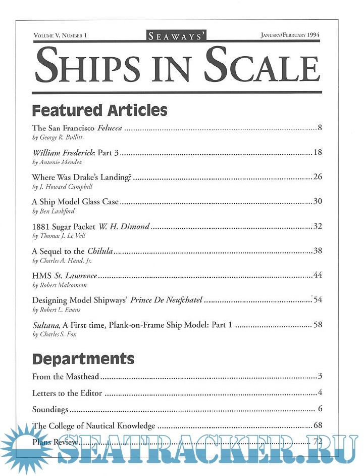 Year: 1994 Language: English Author: Scottie Dayton (Editor) Genre: Periodical publication Edition: 1994-1 Format: PDF Quality: eBook Pages count: 76 Description: Seaway is the home port for Seaways Ships in Scale magazine, the leading workshop and research magazine for the ship modeler. In the magazine we explore all levels of modeling experience, all types of ships, all kinds of models, all historical eras and all construction materials