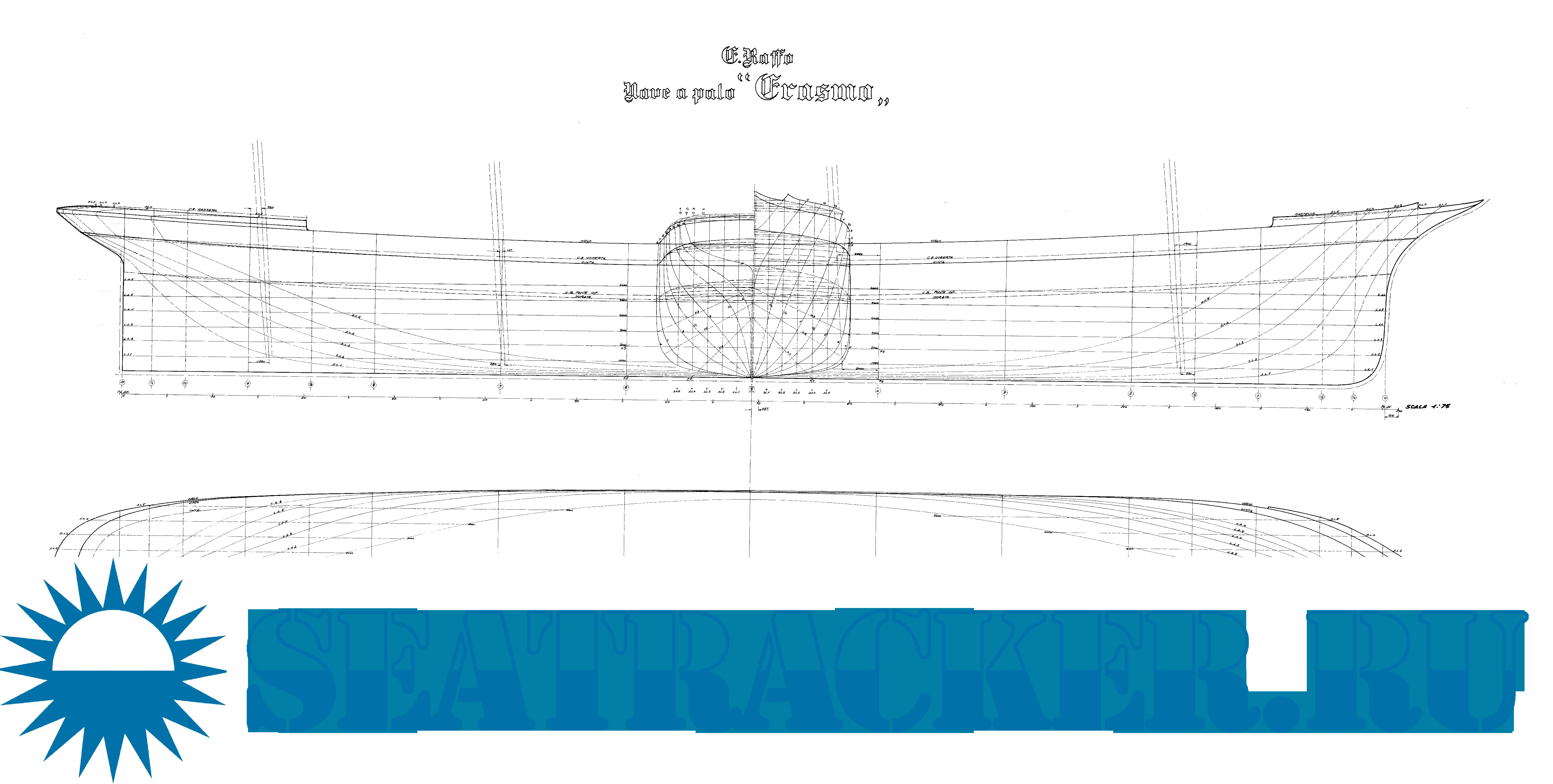 4 листа чертежей и изображений итальянской 4-мачтовой шхуны Erasmo (Erasmus) 1903 год