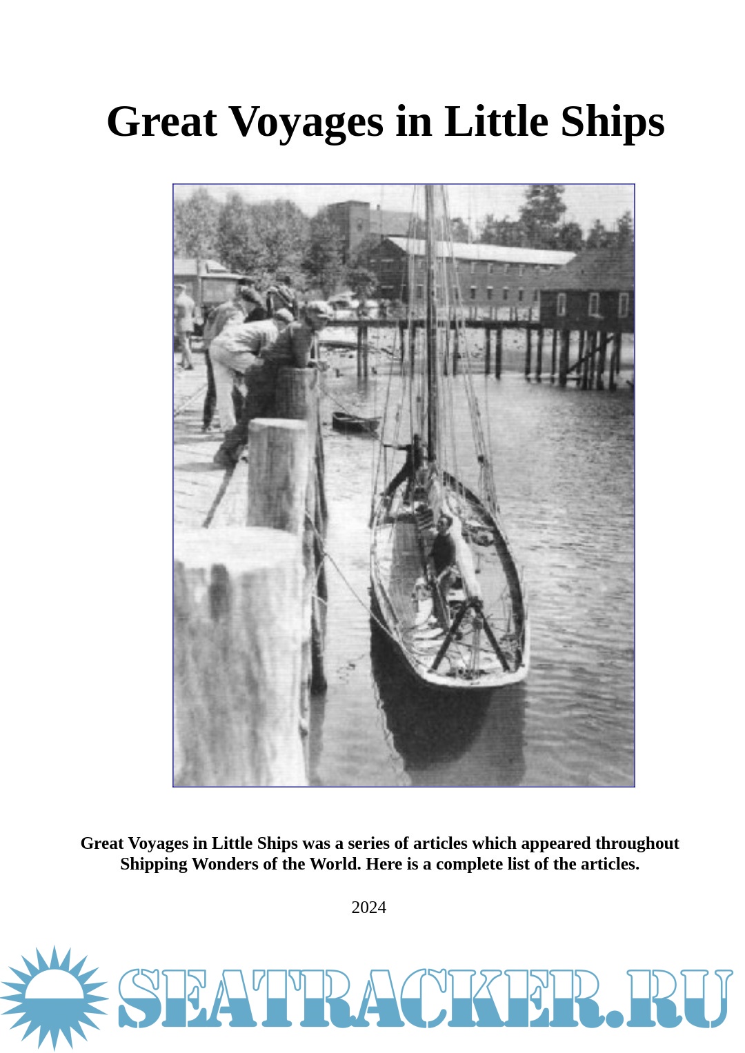 Description: Great Voyages in Little Ships was a series of articles which appeared throughout Shipping Wonders of the World. Here is a complete list of the articles.