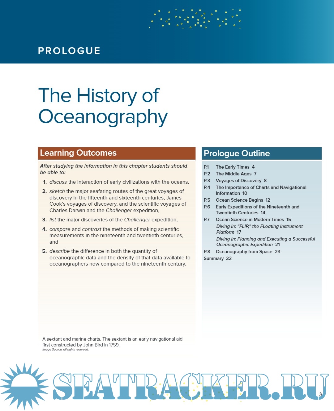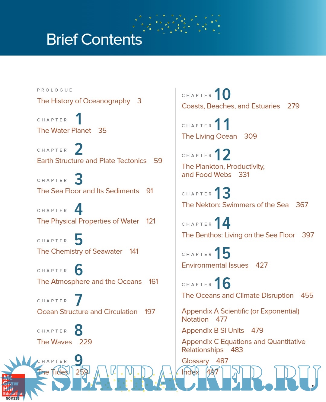 The authors have incorporated essays written by several scientists discussing topics in their fields of specialization. In addition to understanding processes and principles, the authors believe students must have a basic command of the language of marine science in order to understand the constant barrage of information concerning our planet and marine issues. By the end of this course, the authors want students to be prepared for future environmental discussions and the ability to make decisions as informed global citizens.