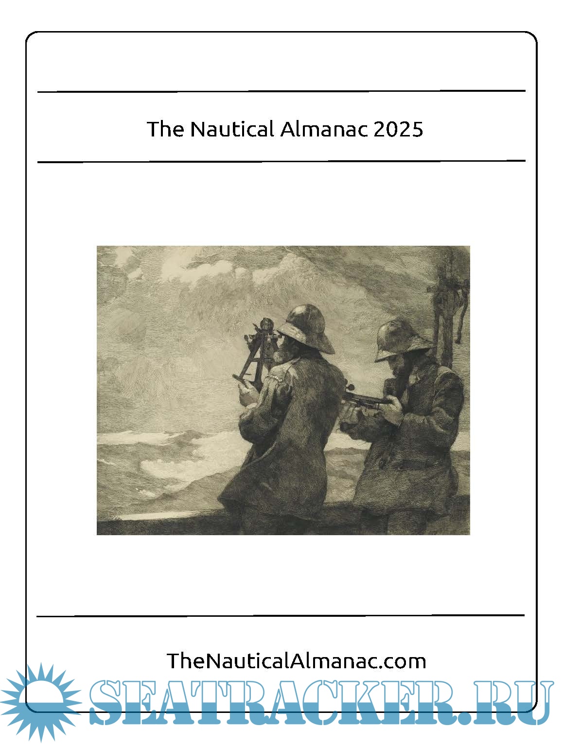 Year: 2024 Language: English Author: Capt. Roberto Iori Genre: Reference book, Periodical publication Publisher: TheNauticalAlmanac Edition: 2025 Format: PDF Quality: eBook Pages count: 293 Description: The Nautical Almanac world's most complete source of free celestial navigation information. The Nautical Almanac was originally created from PyAlmanac written by the great Norwegian sailor Enno Rodegerdts. PyAlmanac used PyEphem to generate the almanacs and LaTex provided the final formatting.
