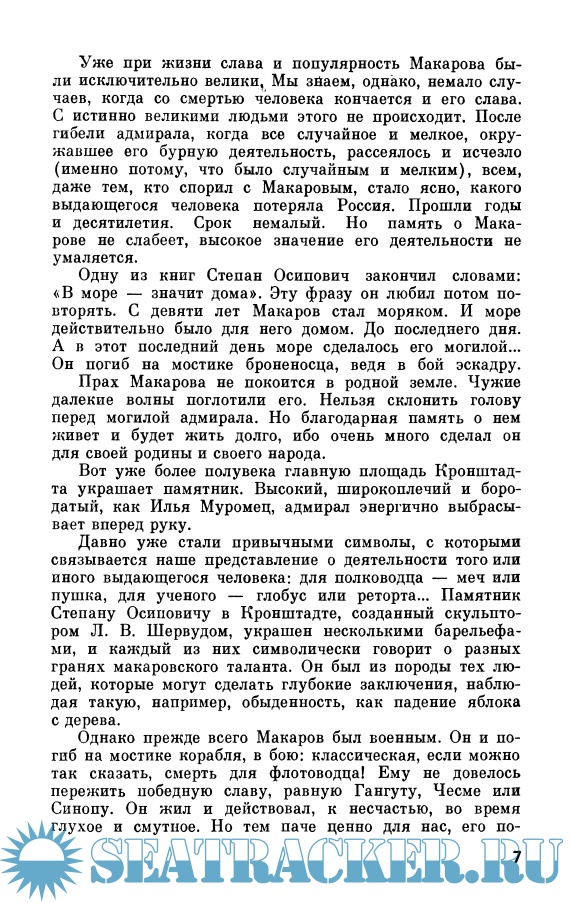 Год выпуска: 1988 Язык: Русский Автор: Семанов С.Н. Жанр: Историческое Издательство: Молодая гвардия Издание: ЖЗЛ Формат: DjVu Качество: Отсканированные страницы Количество страниц: 323 Описание: Книга рассказывает о жизни и деятельности выдающегося флотоводца, ученого, кораблестроителя, путешественника, изобретателя - Степана Осиповича Макарова. Макаров разработал теорию непотопляемости корабля и был создателем знаменитого ледокола "Ермак". Его перу принадлежит книга о морской тактике и географические исследовательские работы.