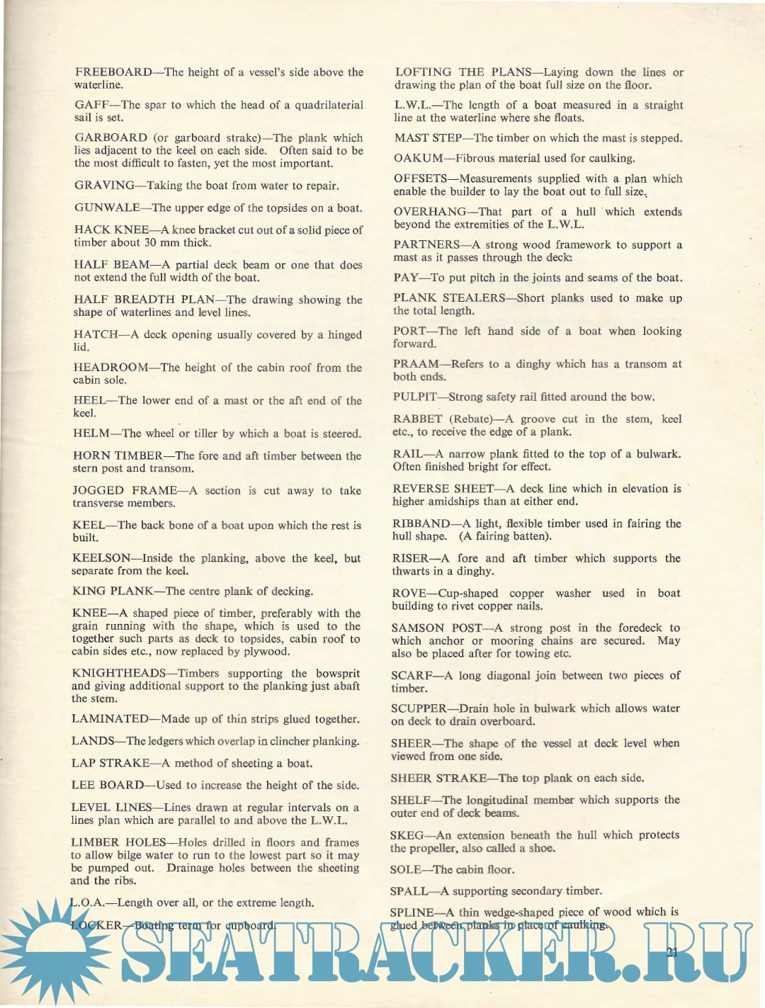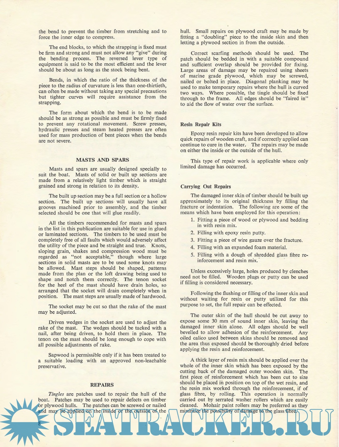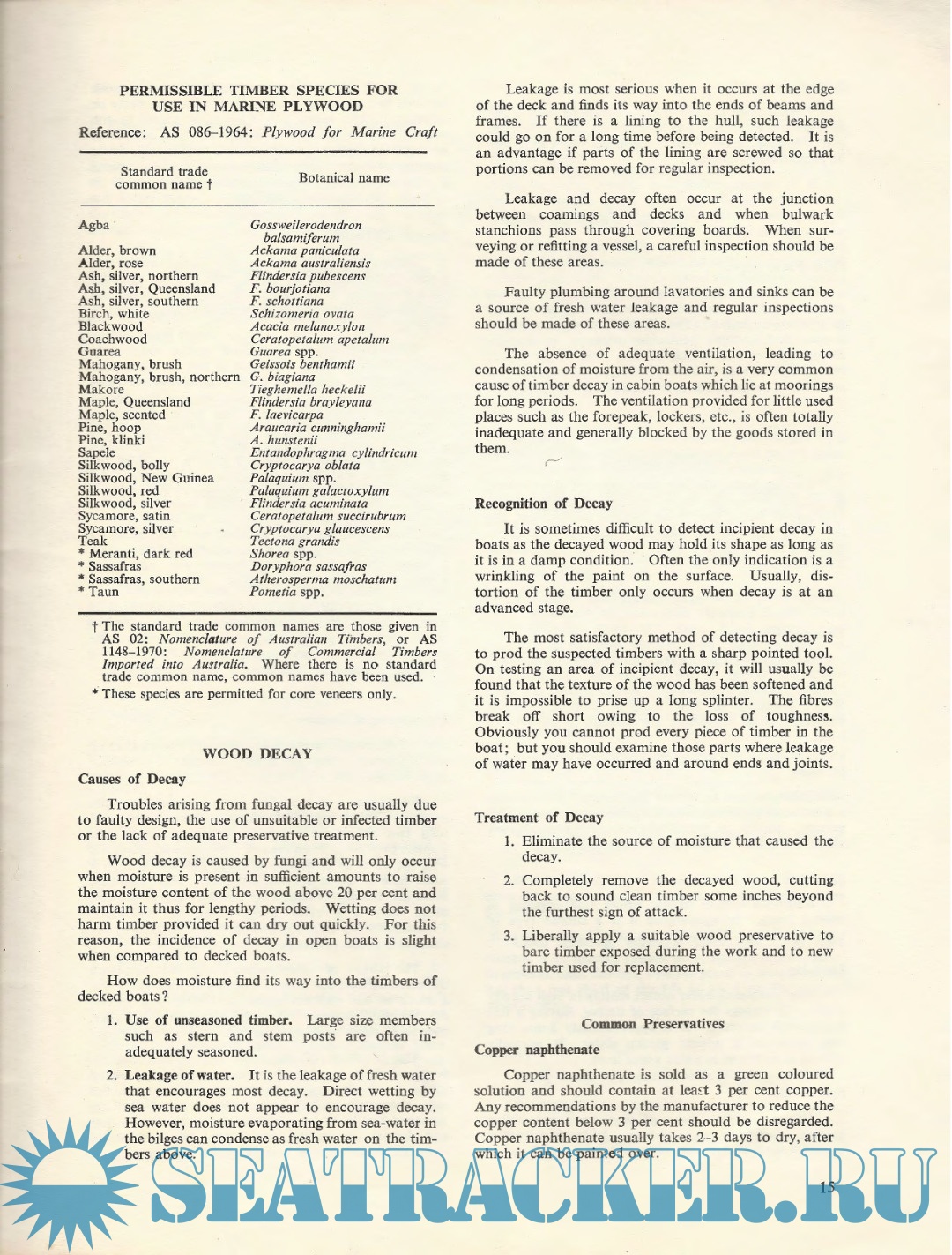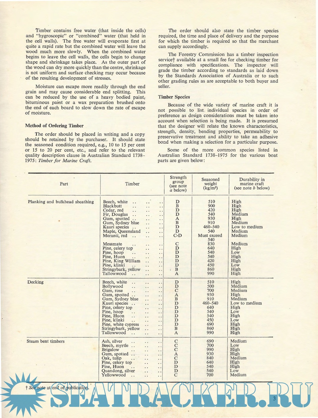 Description: Wood for small has always craft,been and adespite favourite thebuilding adventmaterial of new materials and the increasing difficulty of obtaining suitable timber, it is maintaining its popularity. The advent of new timber products, new adhesives, and new techniques has made boatbuilding by the amateur much more popular. In order to provide guidelines for timber selection the Standards Association of Australia prepared a Standard, AS1738-1975: Timber for Marine Craft. Copies are available from that Association.