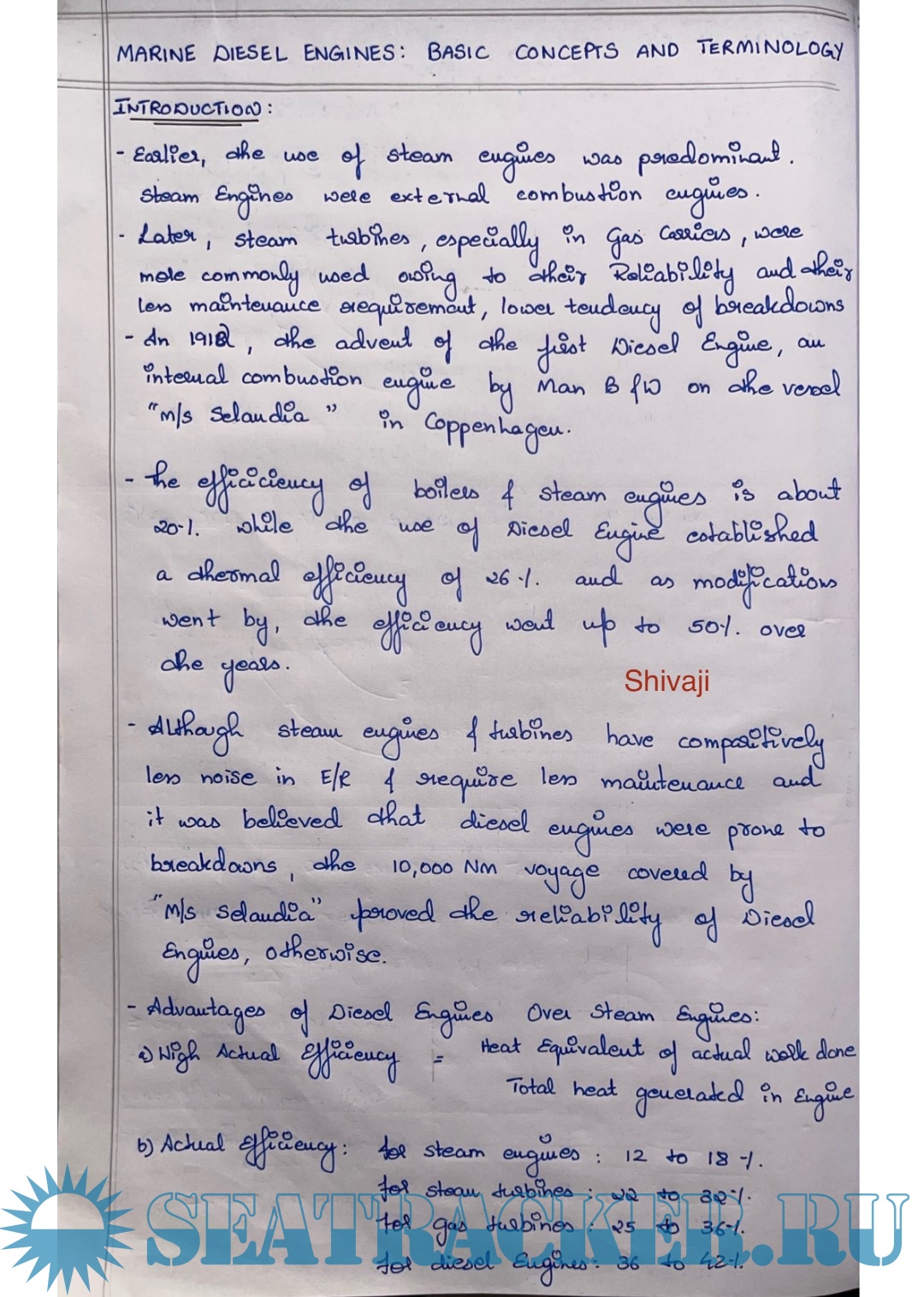 Marine Engineering at Operational Level (MEOL) Questions and Answers (Handwritten Notes).