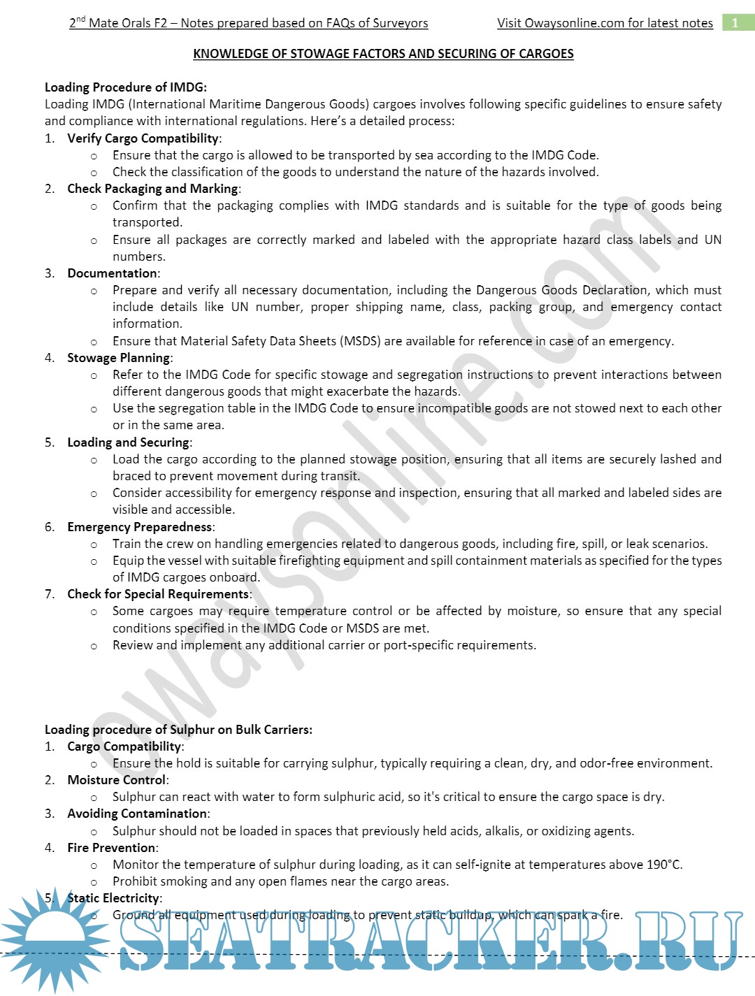 2nd Mate F.G. MMD, India Orals Exams Notes Based on Frequently Asked Questions: Function 1 - Oways…