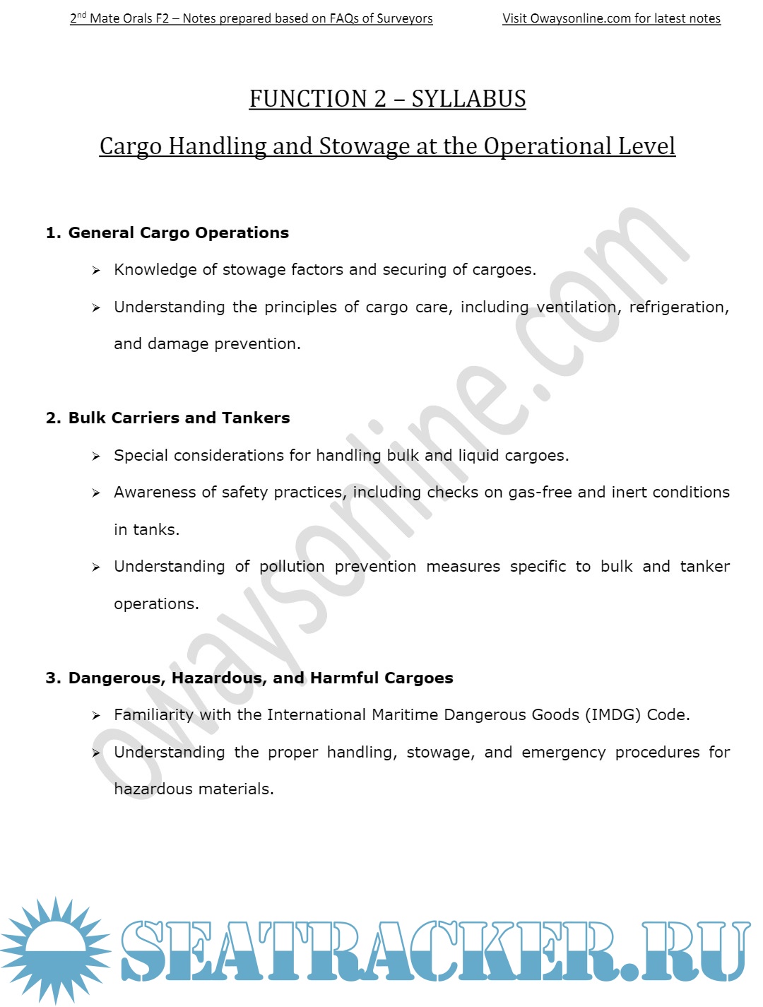 2nd Mate F.G. MMD, India Orals Exams Notes Based on Frequently Asked Questions: Function 2 - Oways…